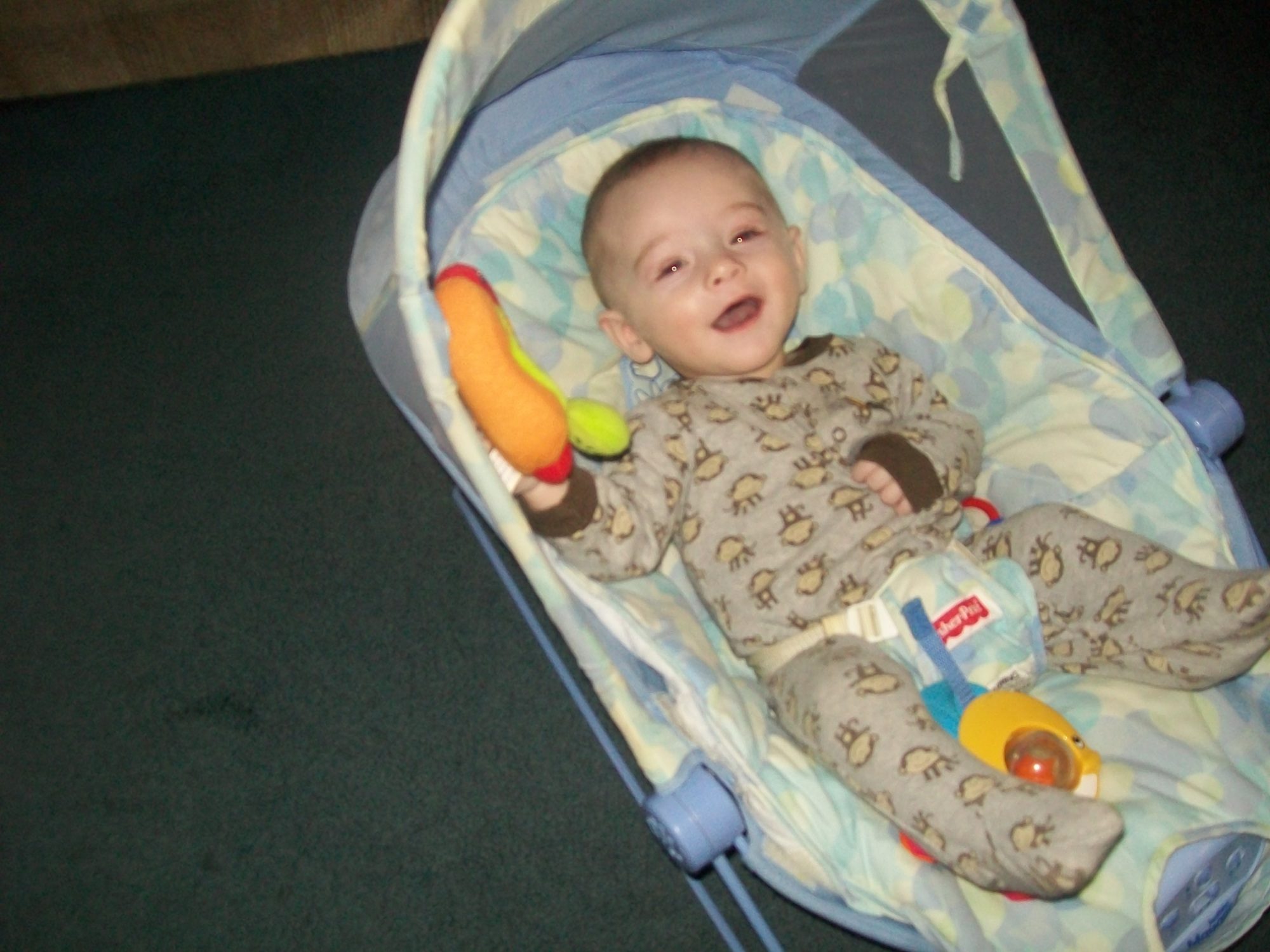 This is Talyn my four month old grandbaby, this is the reason I can't get anything done. No really he is actually easy but I found out real quick I just can't run outside whenever I want to check the chickens.