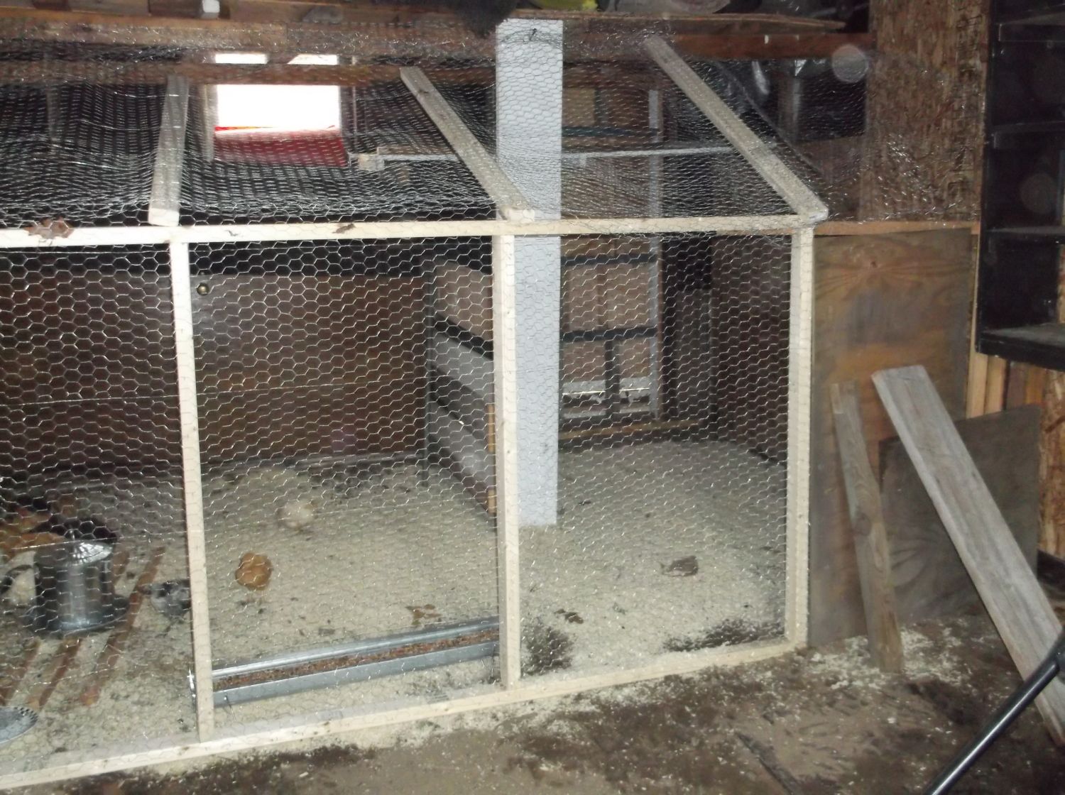 The gap below the "door" is covered in chicken wire. There is a smaller board going across the top of it to give stability. Like I said, IDK who built the shed, but there are some issues with how things line up in there. That and they covered the walls half in various boards and a door with the knob still in (see 3 pics down). Kinda amusing. It fits in with the design I think. I still need to build them a lower roost. I will build that tomorrow.
