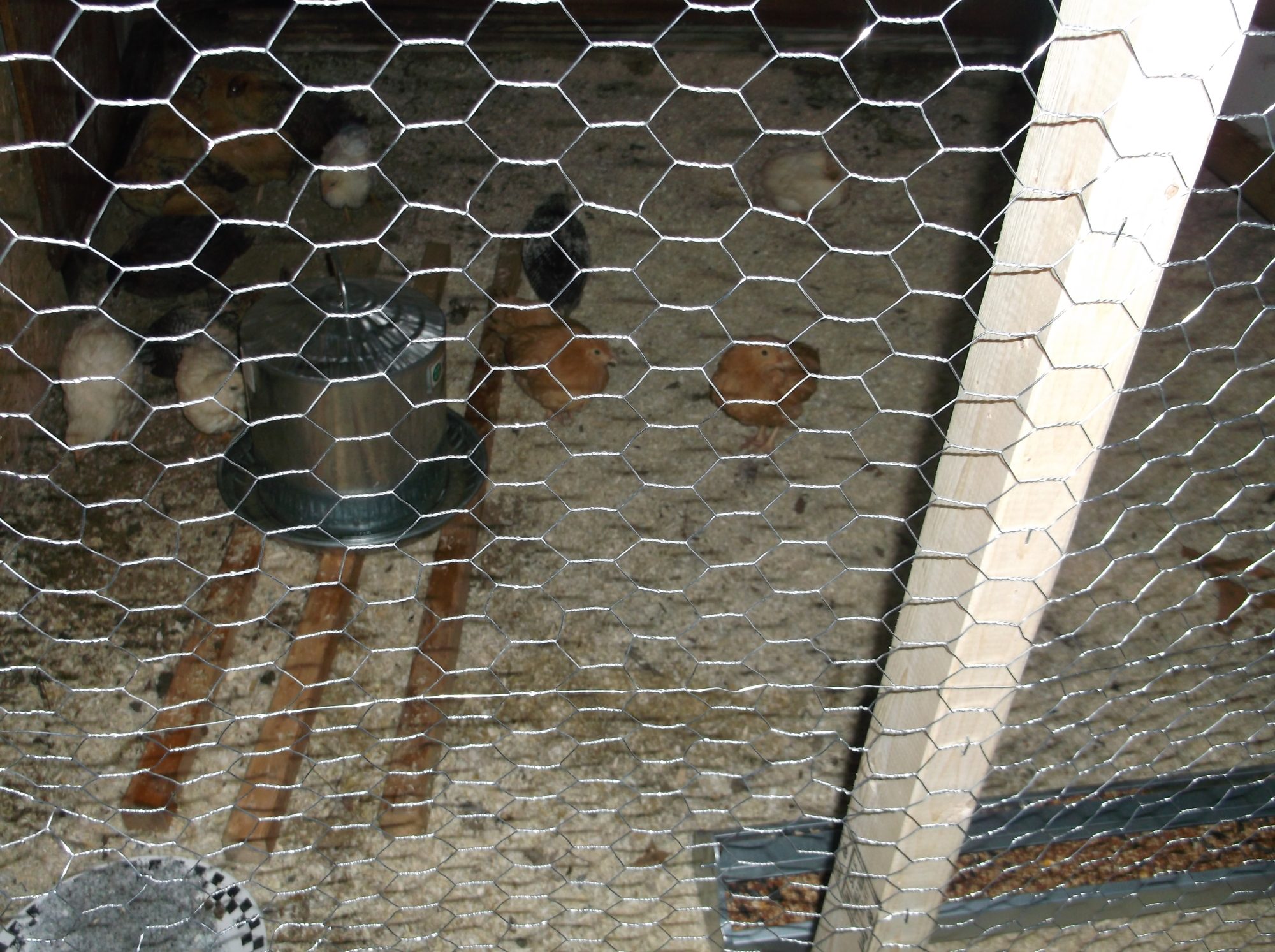 I need to pick up more sawdust. I know that. I had the kids in the shed helping me take them out of the container they were in. They had a ball. The 16 month old was squealing with glee. The boys were trying to show the chickens the food and water. The poor things were scared, so I herded the kids out and gave them some time to deal with the change before I took pictures.