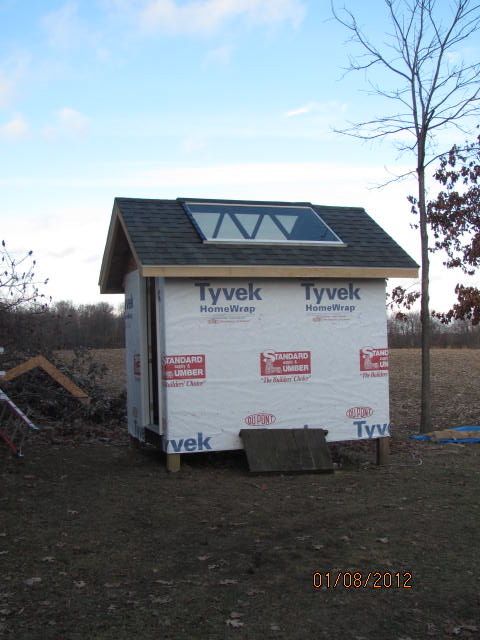 Nice outhouse. (Just kidding, it'a a very nice coop). The Tyvek wrap reminded me of a house I was doing some work on. An older gentleman walked by and said, "You put that stuff on upside down, the letters have to be the other way." He was dead serious so I told him that since heat rises, if you put this stuff on upside down then the heat goes downs and warms the floor. "That's a good idea" he says and walked away.