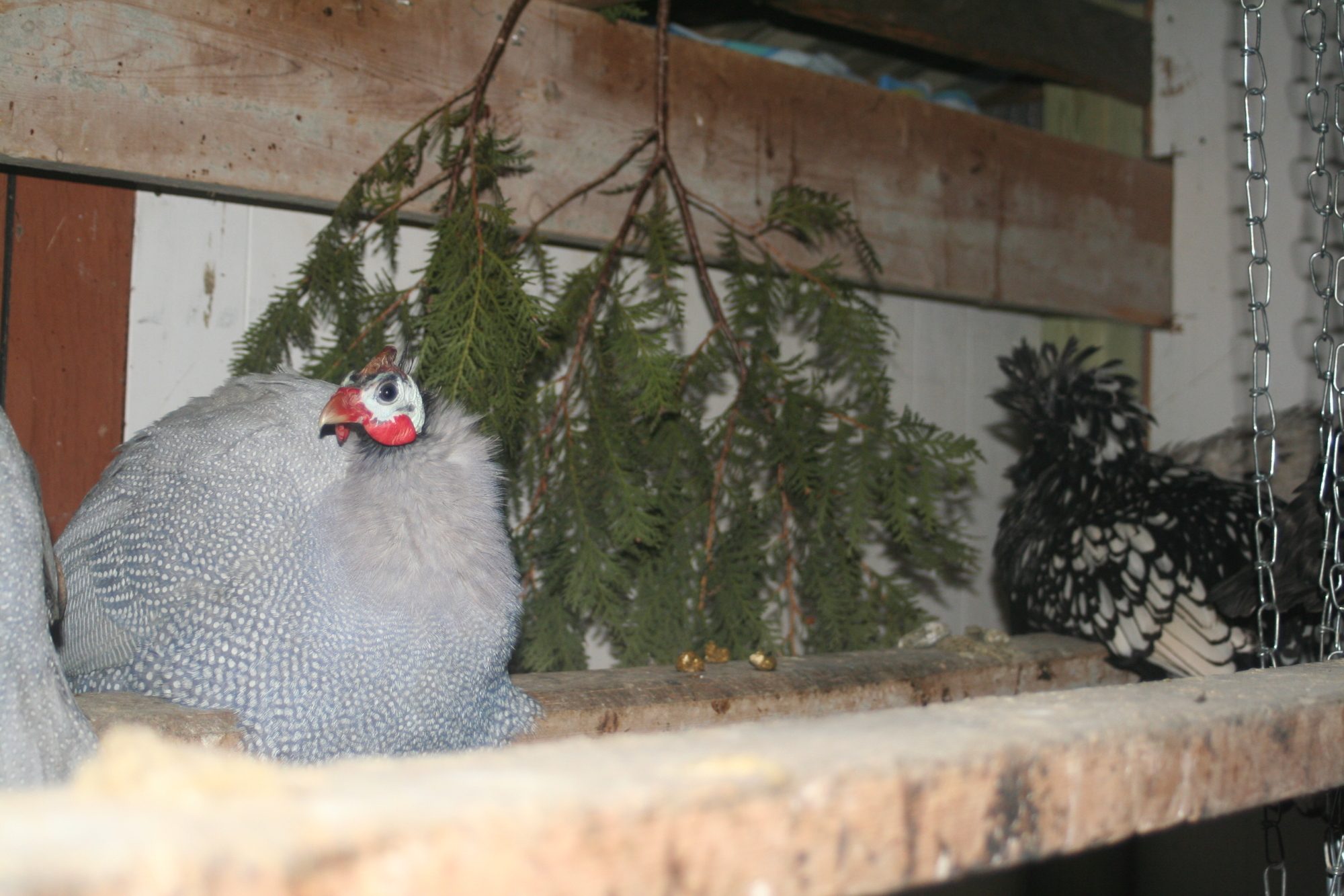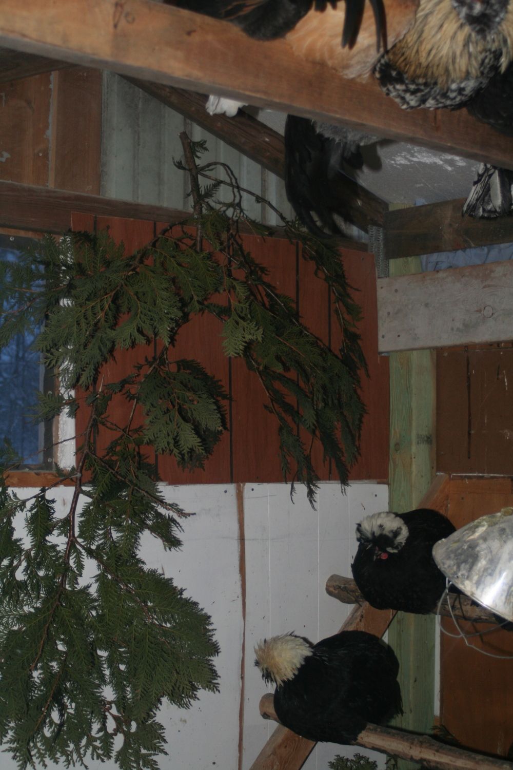 Some cedar boughs with Peep and Bertie