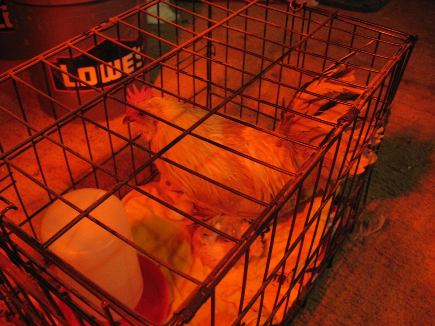 My poor roo Frenchie was just attacked! My kids came running to my room saying they were hearing a chicken screaming from where they were in the living room. I ran outside with a flashlight hoping they were only hearing the roos going off for whatever reason, but no. When I got to the bantams, I found 5 of them and 2 great big piles of feathers (no blood, just feather). I have to tell you my heart sank when I saw those feathers. I flashed back to when we lost Frenchie's sister, Muffin and wondered if a skunk found a way in again. I was able to track the feathers about halfway across the yard before losing them. So my youngest daughter and I started systematically going over all the yard even though it's dark and raining. I warned her if we found him he would most likely be dead. I was about to give up and was on the other side of the yard when we both heard some clucky noises. She ran over to our side deck and there he was! He was on the deck and so scared. I was able to get him and we brought him inside. I looked him over, but minus the feather loss he looks fine. We've got him in a dog carrier with a nice warm blanket and a cuddly toy to keep him company. I'm going to keep him inside tonight so he can calm down and get dry. I don't know what attacked him, but thank goodness whatever it was wasn't able to finish the deed.