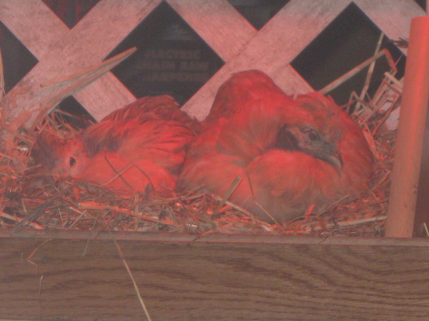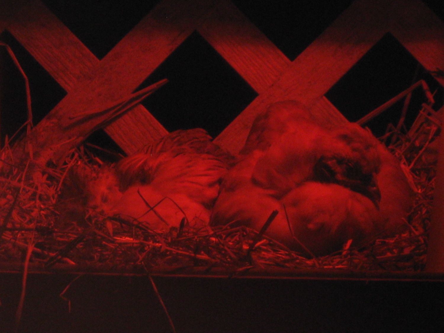 Stealth pictures taken through the coop window of the new additions. They happen to be sleeping in the favourite nest box so I imagine that will not be the permanent sleeping spot. Gravy is sleeping in the box next to them.