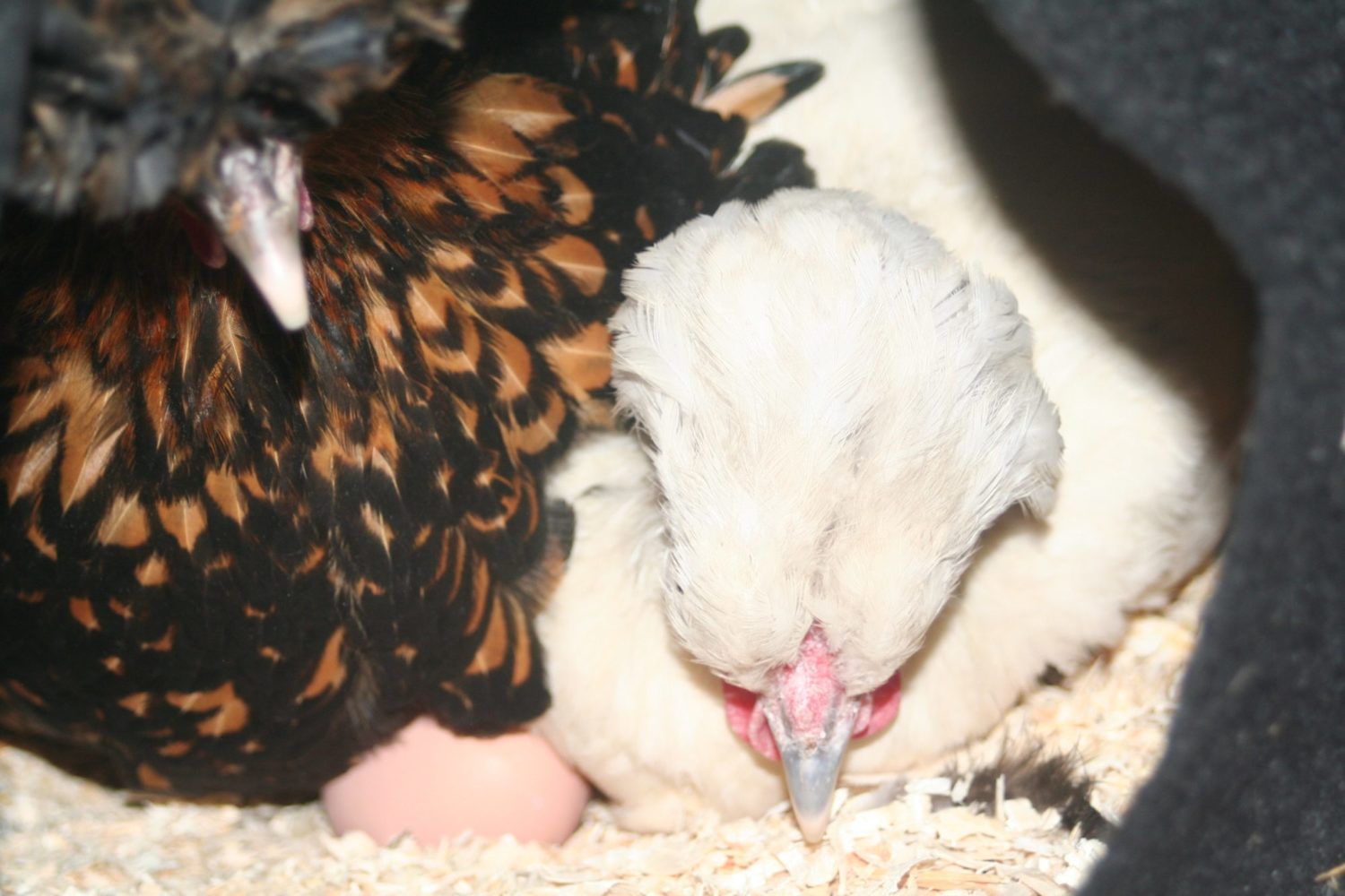 Here is part of the reason I decided to move her to the cardboard box. Not all my birds are as willing as the Polish to share the nest boxes.