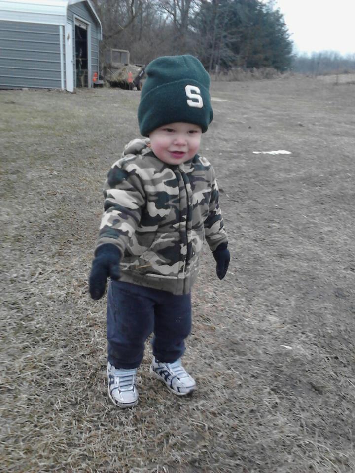 He's a year and a half now and is about the cutest thing ever lol This was yesterday on the way in from doing chores