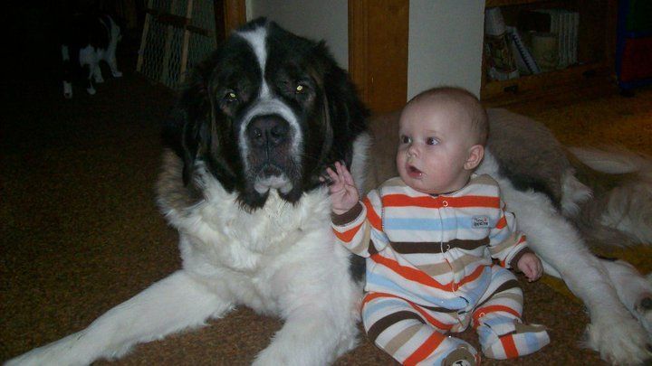 here's a picture of my big house cow (Oscar) and Aaron (taken last year...he babysits sometimes lol) he's shaved down in this photo.