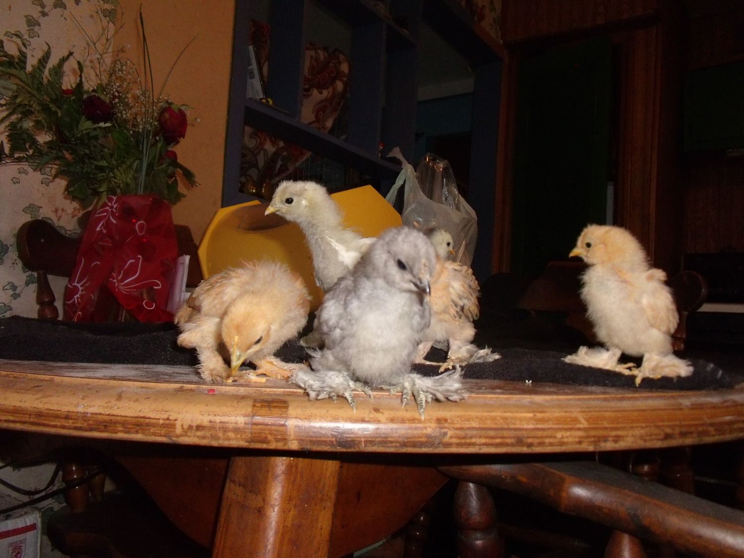 Ohhh, and the dust. We used our spare bathroom to keep the chickies in the bathtub, and with pine shavings, everything was covered in dust. That stopped with the switch to sand too.
