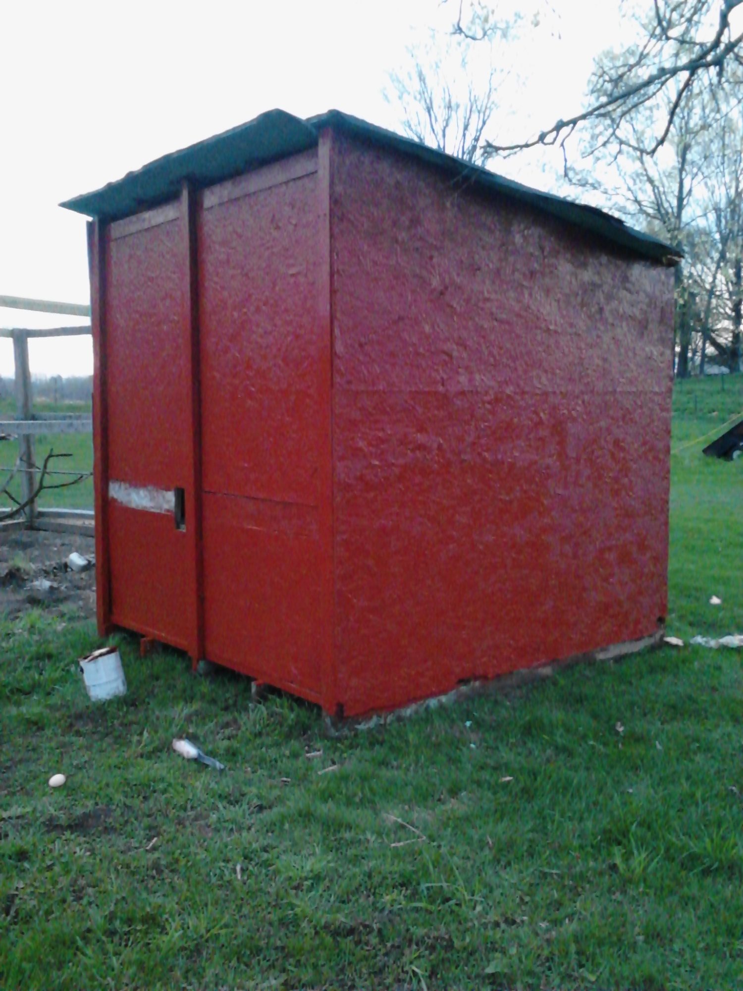 So today was very productive :) Put more eggs in the bator and I'm starting a coop project. A friend of mine is moving and gave me one of her old coops...and we are working on redoing it. Have to fix up the wall with the door and put on a new roof and new floor. It's amazing what a fresh coat of paint can do! Have to do a second coat and then will start working on the rest...but at least it's not that horrible mint green anymore!