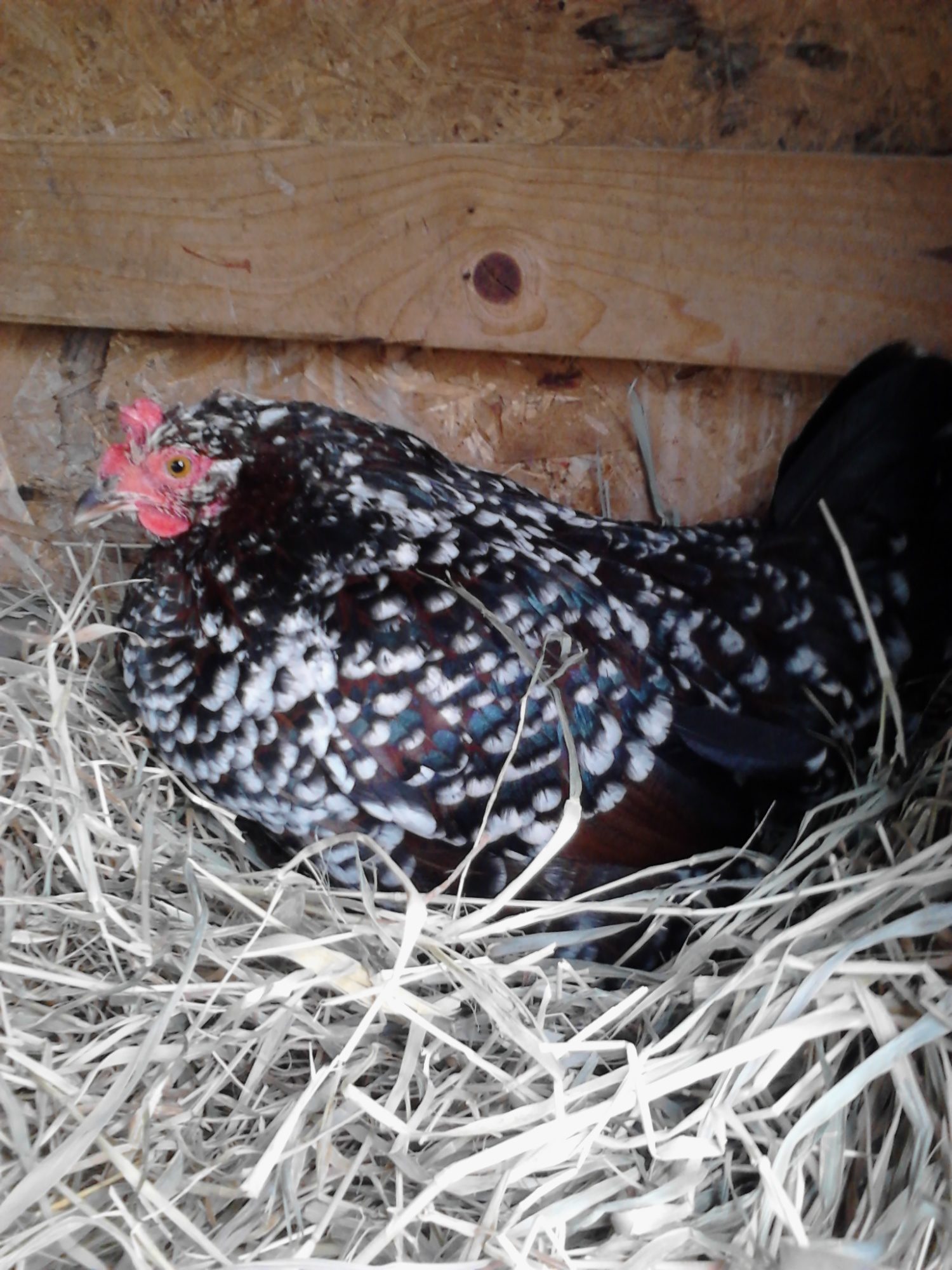 One of my speckled hens giving me the stink eye cause she knows I want what's under her