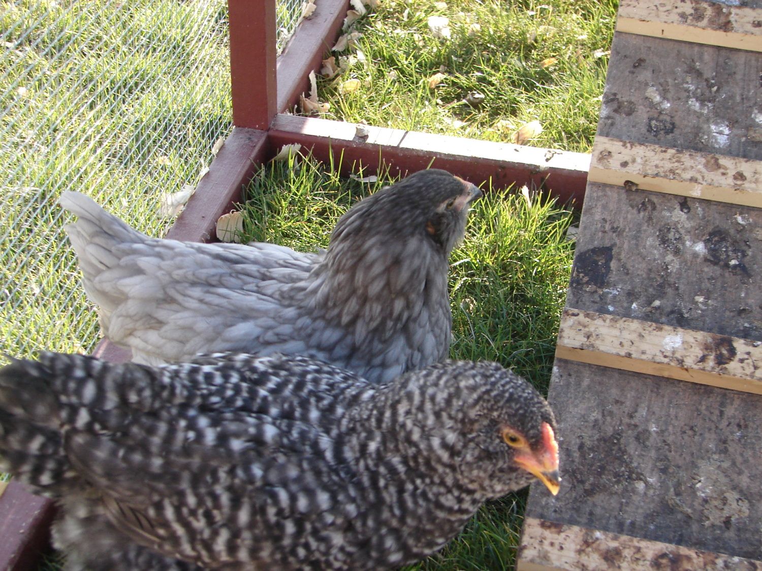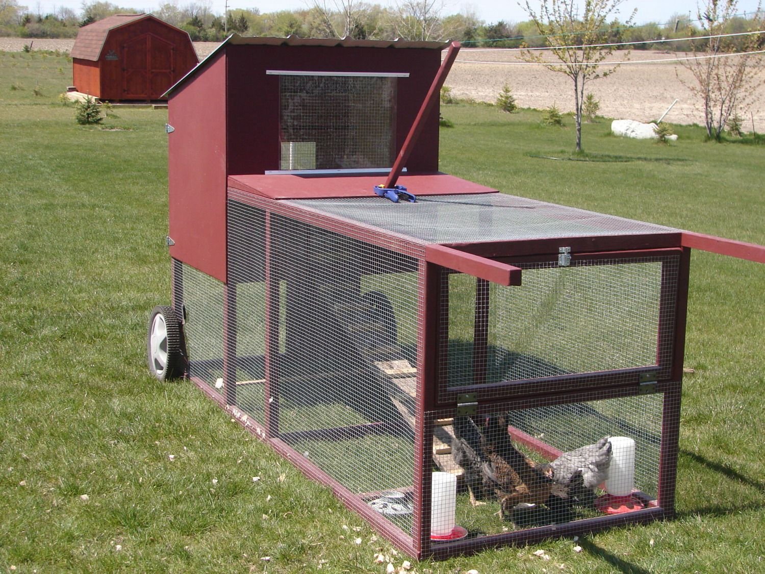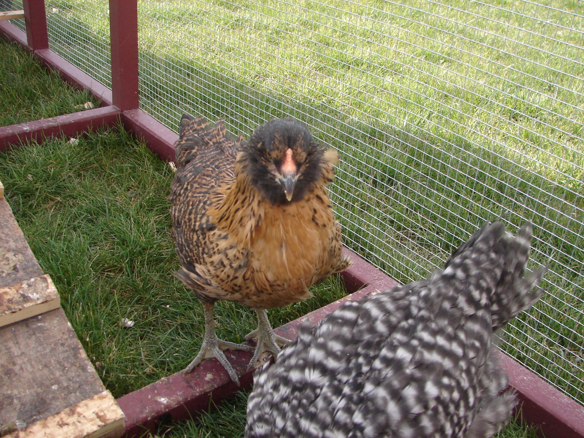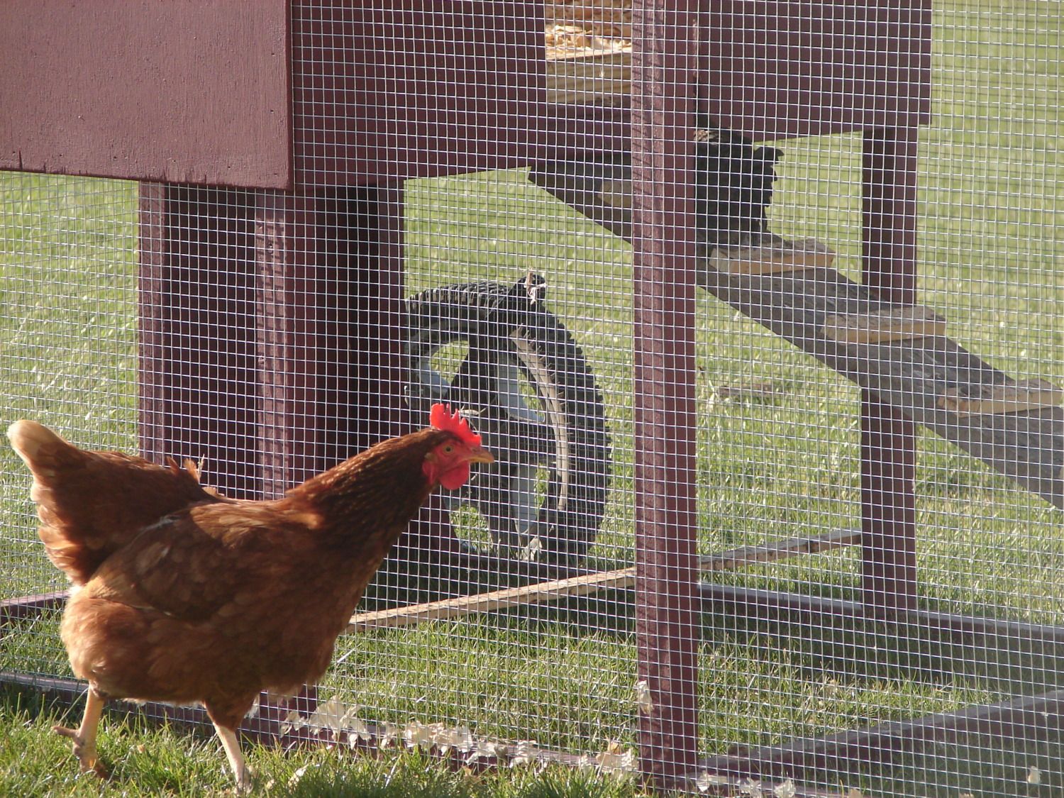 It's nice out today so I took some pics of the chics and their tractor. I just have to put a few decorative finishing touches on it.....being a sign, a latch for the door lever to keep it open & a molding around the front window. Right now I'm just using a clamp to keep the walkout door open. I also would like you guys to give me your opinions if you don't mind on Ms. Shelby. She acts like very much like a Roo and her comb is much larger than the others girls. Sorry about the picture over load....I sorta got carried away.