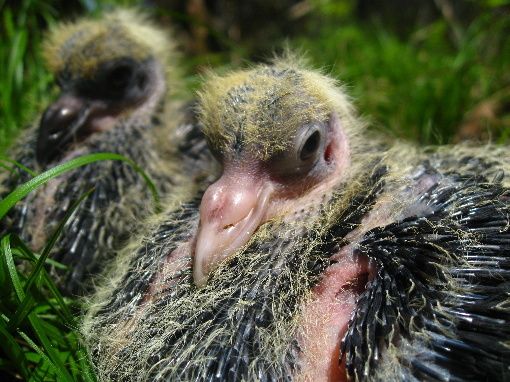 Pigeons that are less than a day old. 1 1/2 inches long.