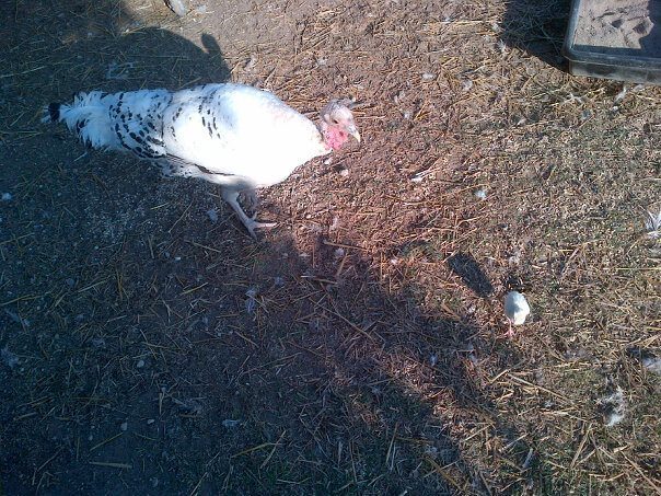 The broody turkey was off her nest today. I left the last ch.....poult with her, sorted out the bad eggs and left a few that may be ok. She was sitting on them again. I hope she can hatch out a couple more before she gives up. And I was surprised that none of the chickens were bothering the tiny poult. I'll be letting the turkeys out to free range the larger fenced area soon.