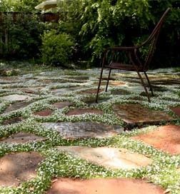 Mom, I'd go with the stepping stones and thyme, rosemary, oregano... just for its dual purposes. Yes, they all come back every year. AND, when you need some fresh herbs, just go out with a pair of snips, and get a handful.