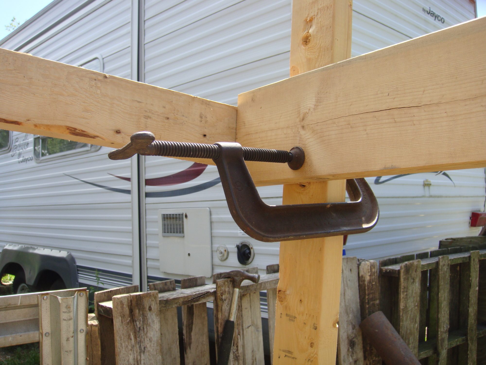 Awhile ago I composed a response to the lovely Arbor or trellis you designed and built of natural (more or less ) branches. Lost the thing before posting, but was reminded of a comment you made then regarding an extra hand or helper being needed or something like that. I was in the same predicament the other day when trying to finish the run roof alone. THE SOLUTION ?