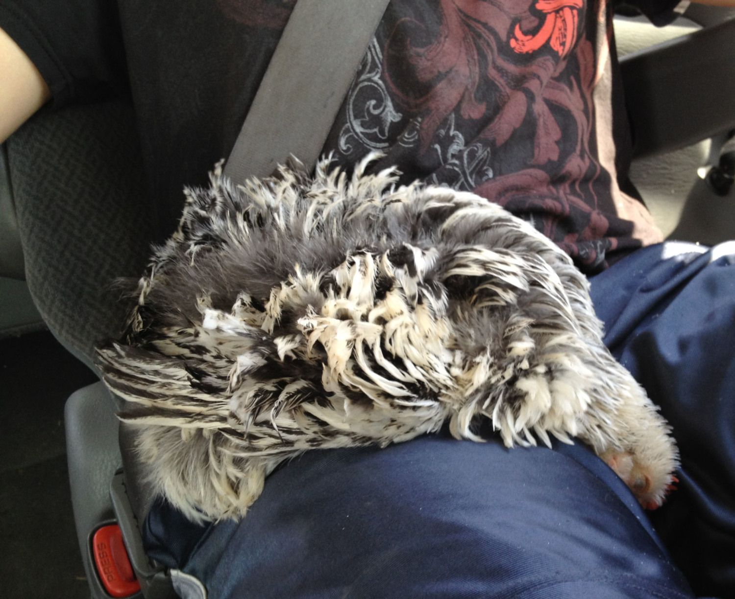 That crazy chicken rode on his lap the whole 2 hour drive home.