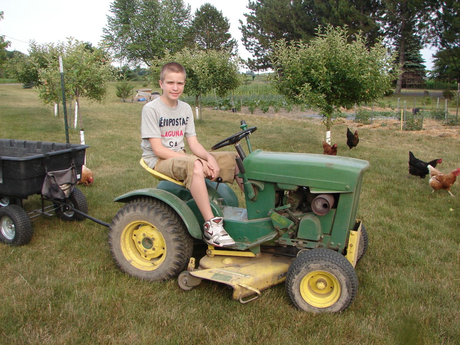 My son on his 67JD Lawn Tractor. He plans on cleaning it up & taking it to a tractor show.
