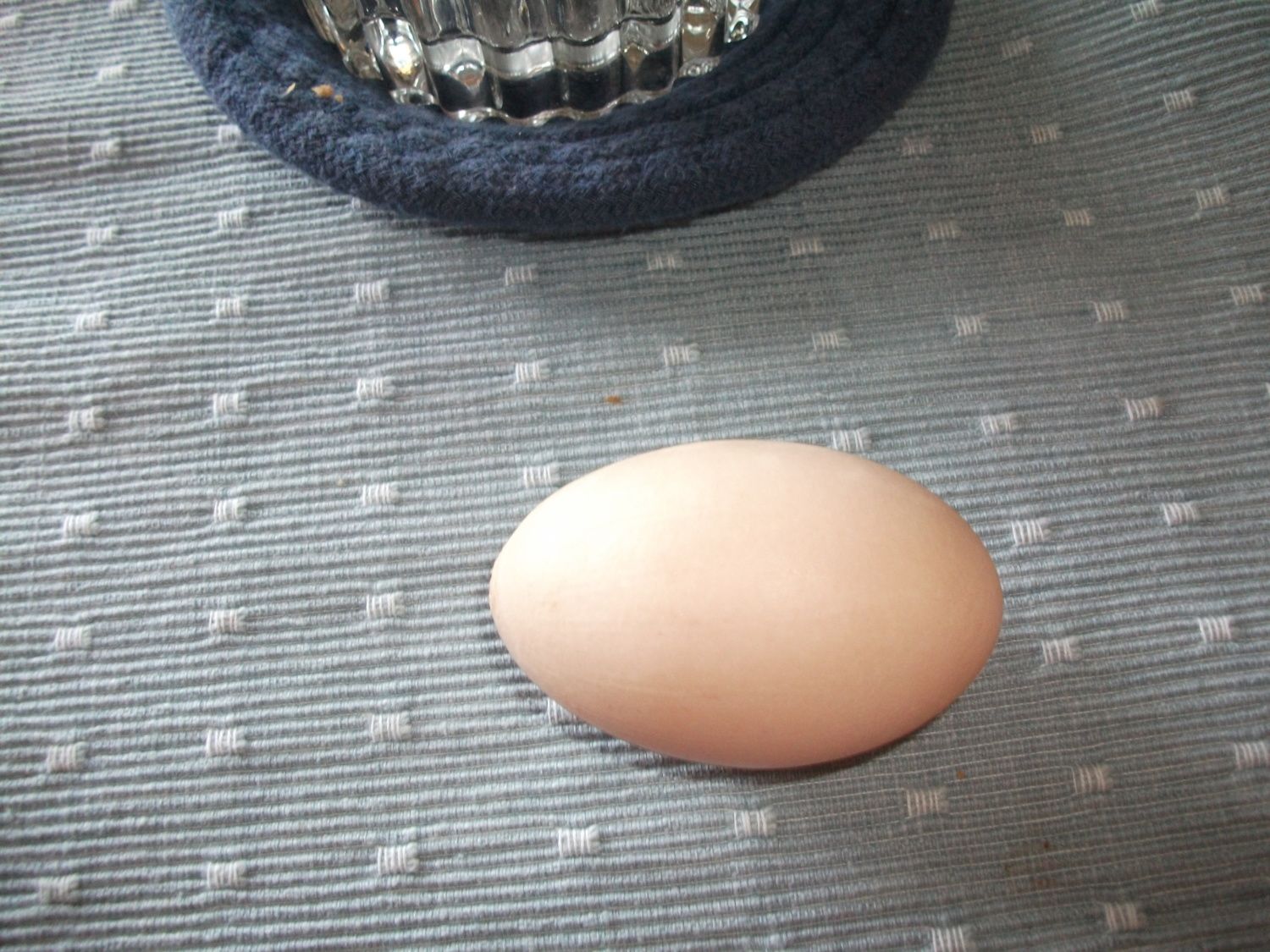 Here's a pic of the egg I got the other day weighed 3.5 oz / 98g. First time I got one that was so oblong looking. I had it for breakfast and when my DD cracked it open...surprise, a double yolker.