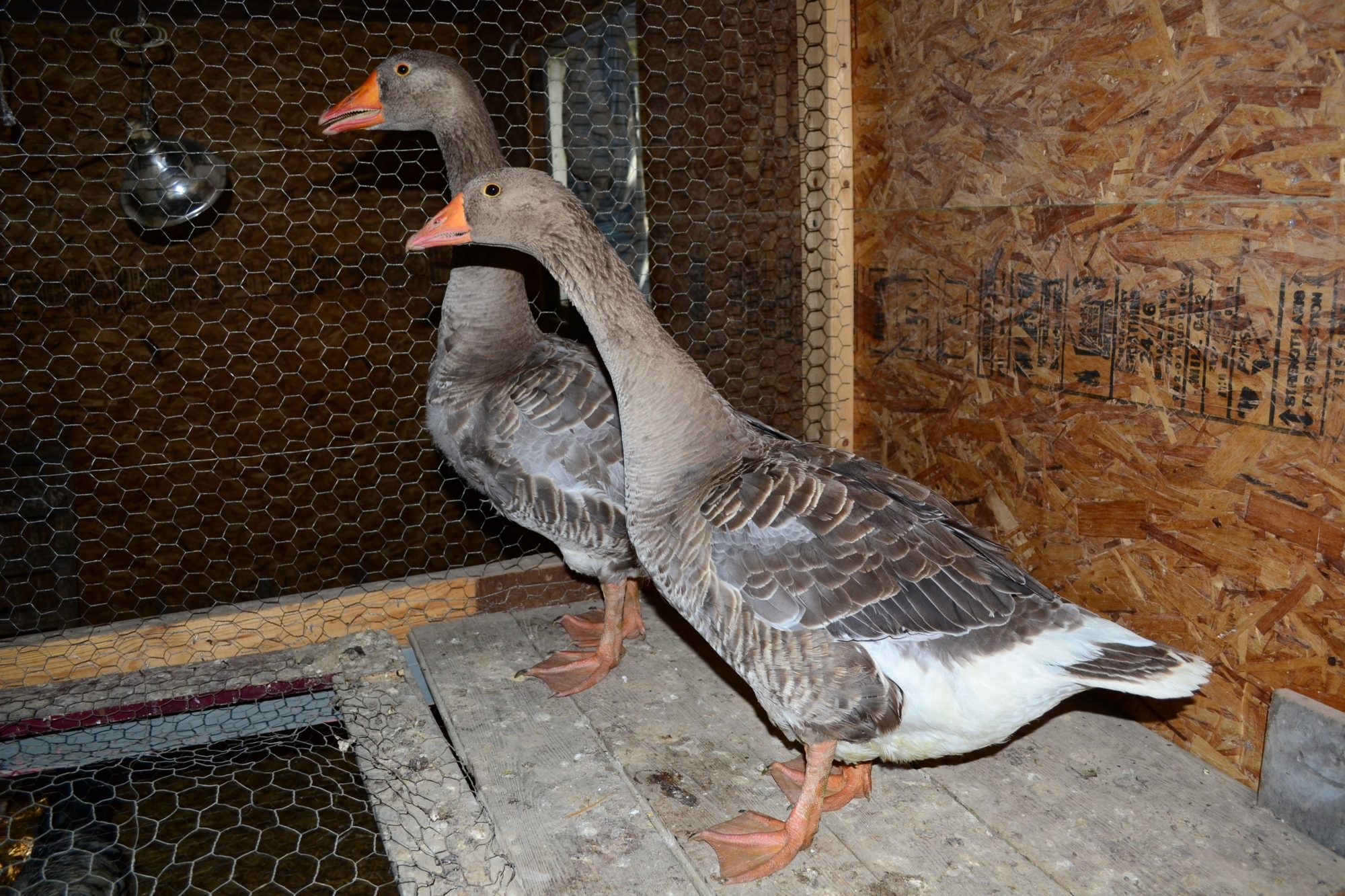 FINALLY I have Toulouse!!! The female, Jazzy (her name really fits her!) is very sweet and doesn't mind me holding her at all. The male (not sure if he has a name) is very protective of the other two and he loves to watch everything! I couldn't stop watching them. I must have gone out to the barn 5 or 6 times to just stand there and look at them! A handful of my ducks are being re-homed this weekend so I might try these guys with the ducks so they can come out and graze with them. If that doesn't work then we'll make them their own place. I'm just SO excited to have them!!!