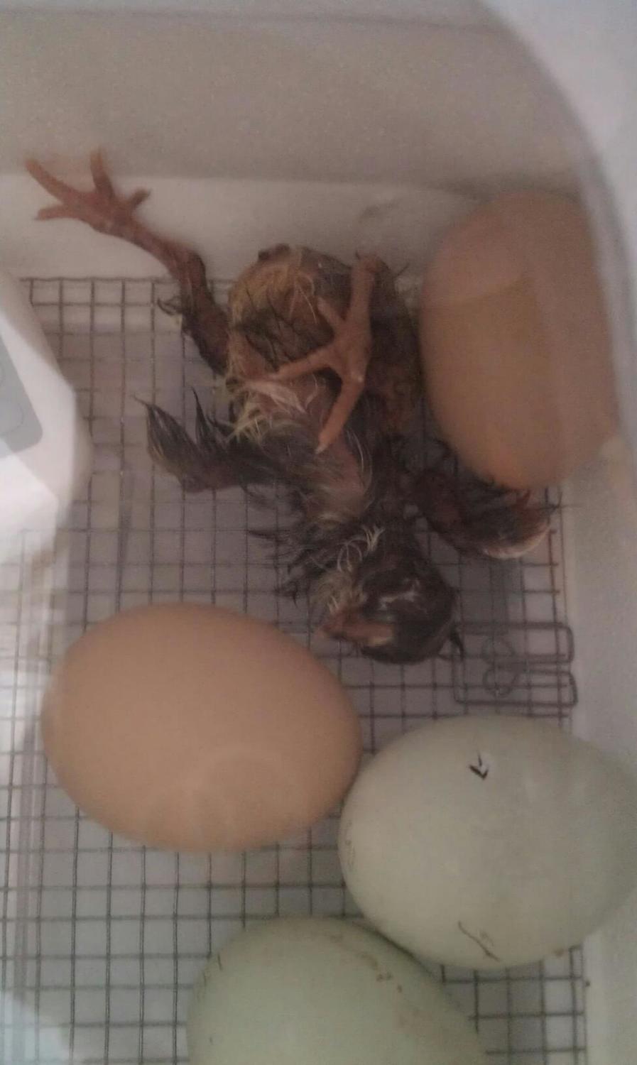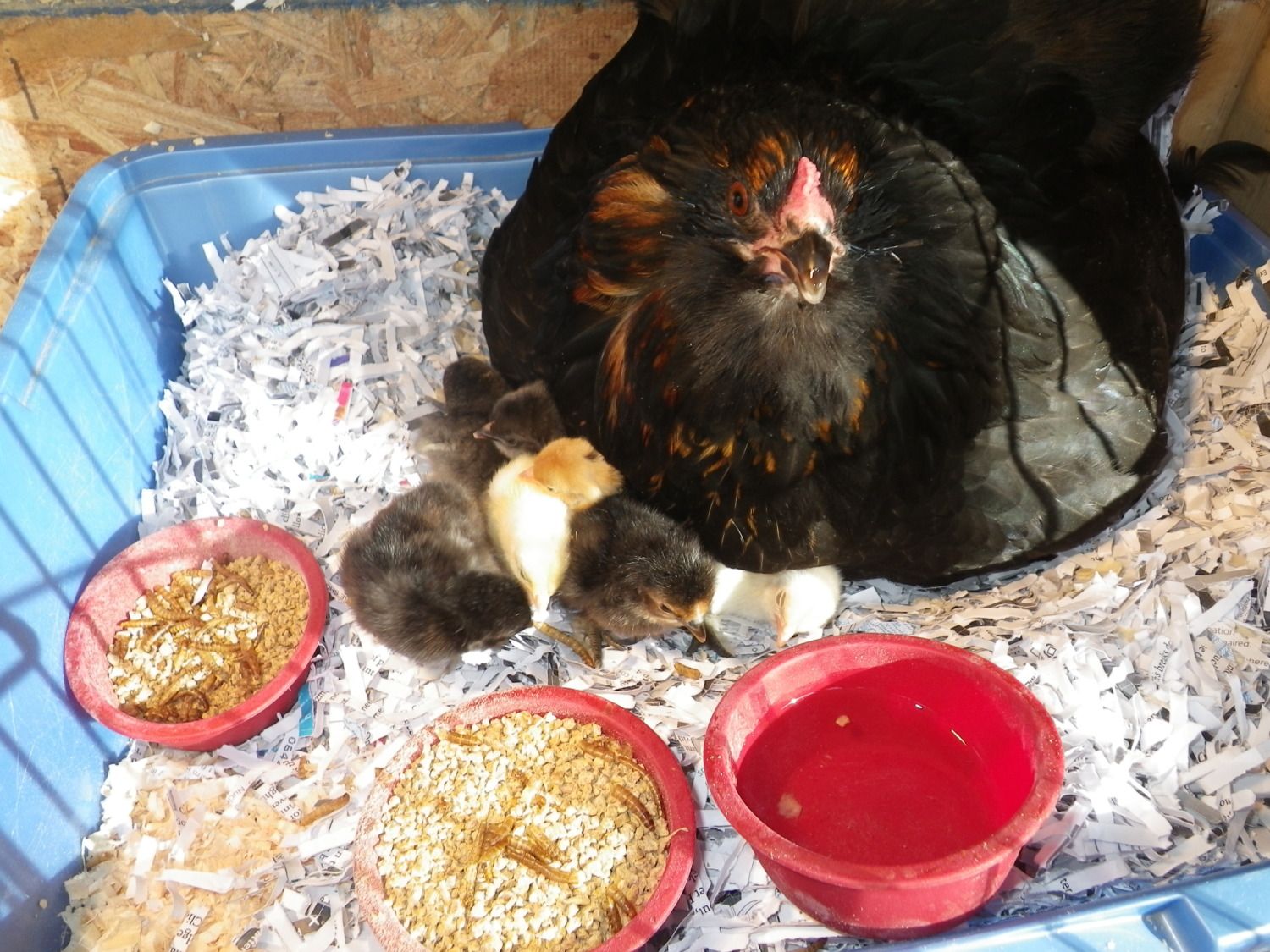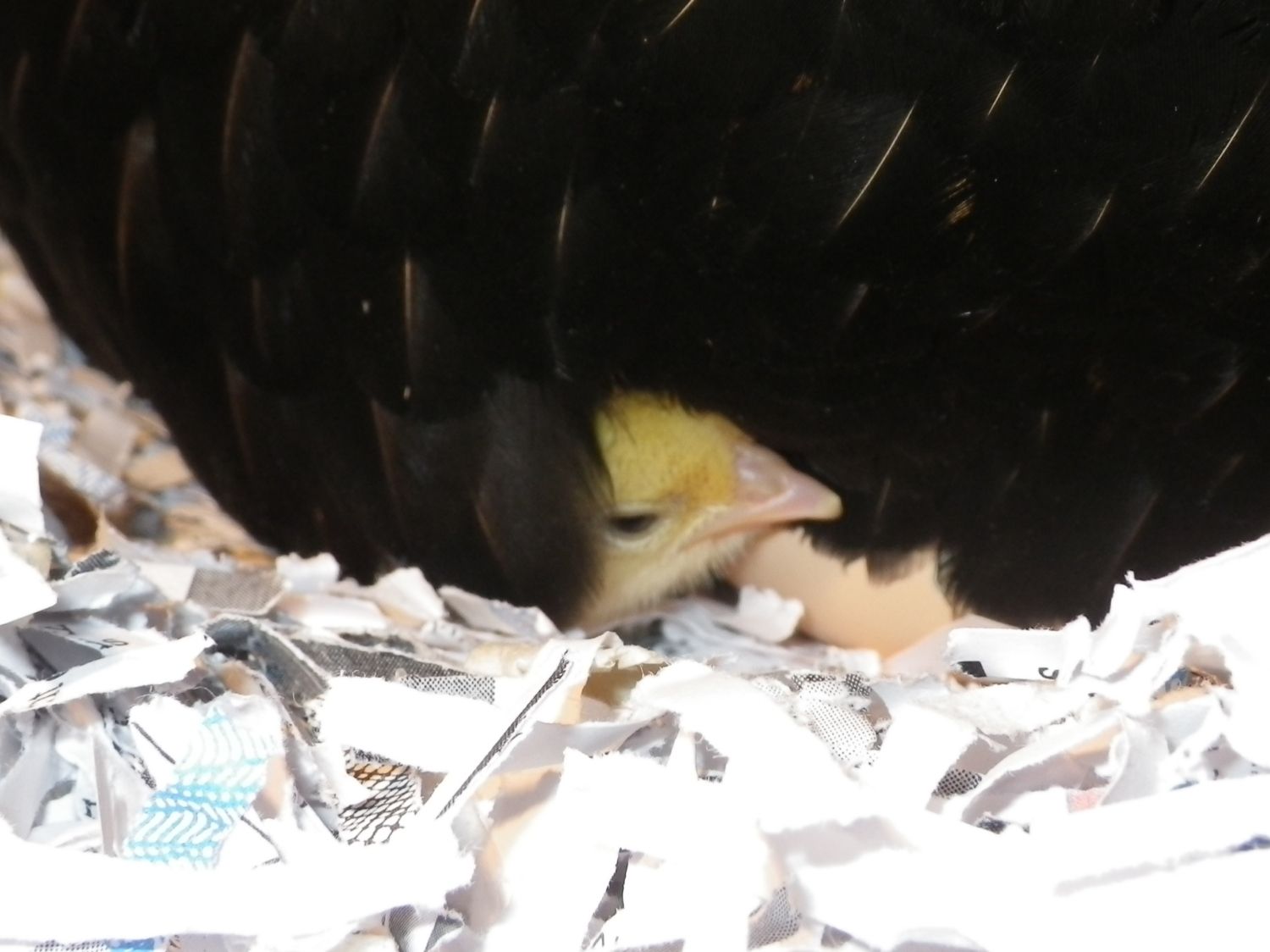 I havent caught a glimpse of the baby yet, which is really okay considering the thermomter says its about 45 degrees in the broody box. Its exciting enough to know that there IS one!!! YEAY!!!