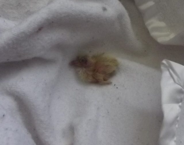 Sitting in the incubator drying out, lookin all scruffy. Ive got his brooder warming up