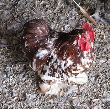 Your pullets can have a slightly longer back but not so long as to have them look like you could roll a skateboard from the top of their head down the back and up the tail on the other side while looking at them in profile. Or you can call it a ski slope look. However, you get too short of a back and you won't get many eggs to breed on that beauty and the roo has a harder time staying on her while breeding. Major down fall in breeding bantam Cochins. So many folks have to AI and blame it on the fluff. Just breed a better bird, imo. Fluff has not bothered mine too much.