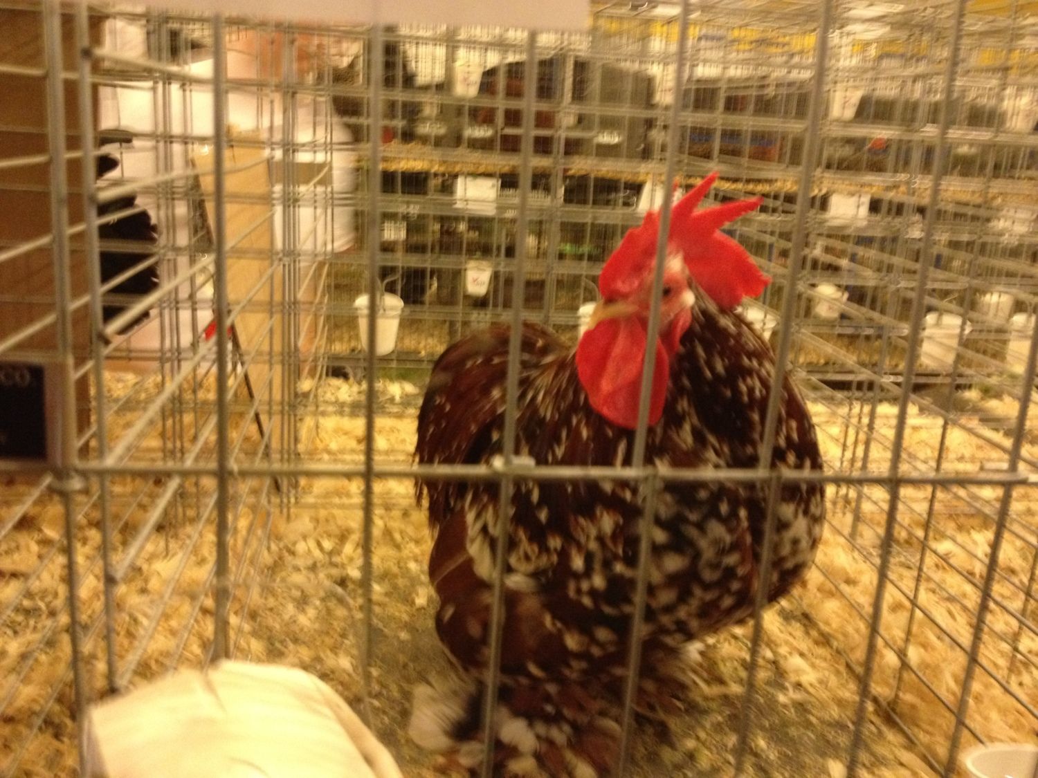 The roo needs more chevrons just like the pullet. Hard to see his type but he looks nice. You don't want him to be mahogany, he needs to be more vermillion to fit with a MF standard. His cushion looks like it needs to be fuller. And his comb is much too large, you are right.