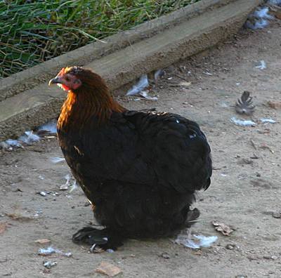 She is very nice. I bet you will get nice chicks from her!Okay, here is an example of much better wing carriage. This is a very nice lady. She is a big girl for her age, just 4 months. I like her type. She is out of Dude, who was colored just like she is. Her mom was one of my buff Mottled girls. I expect her to give me quality offspring next year with the right roo.
