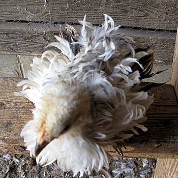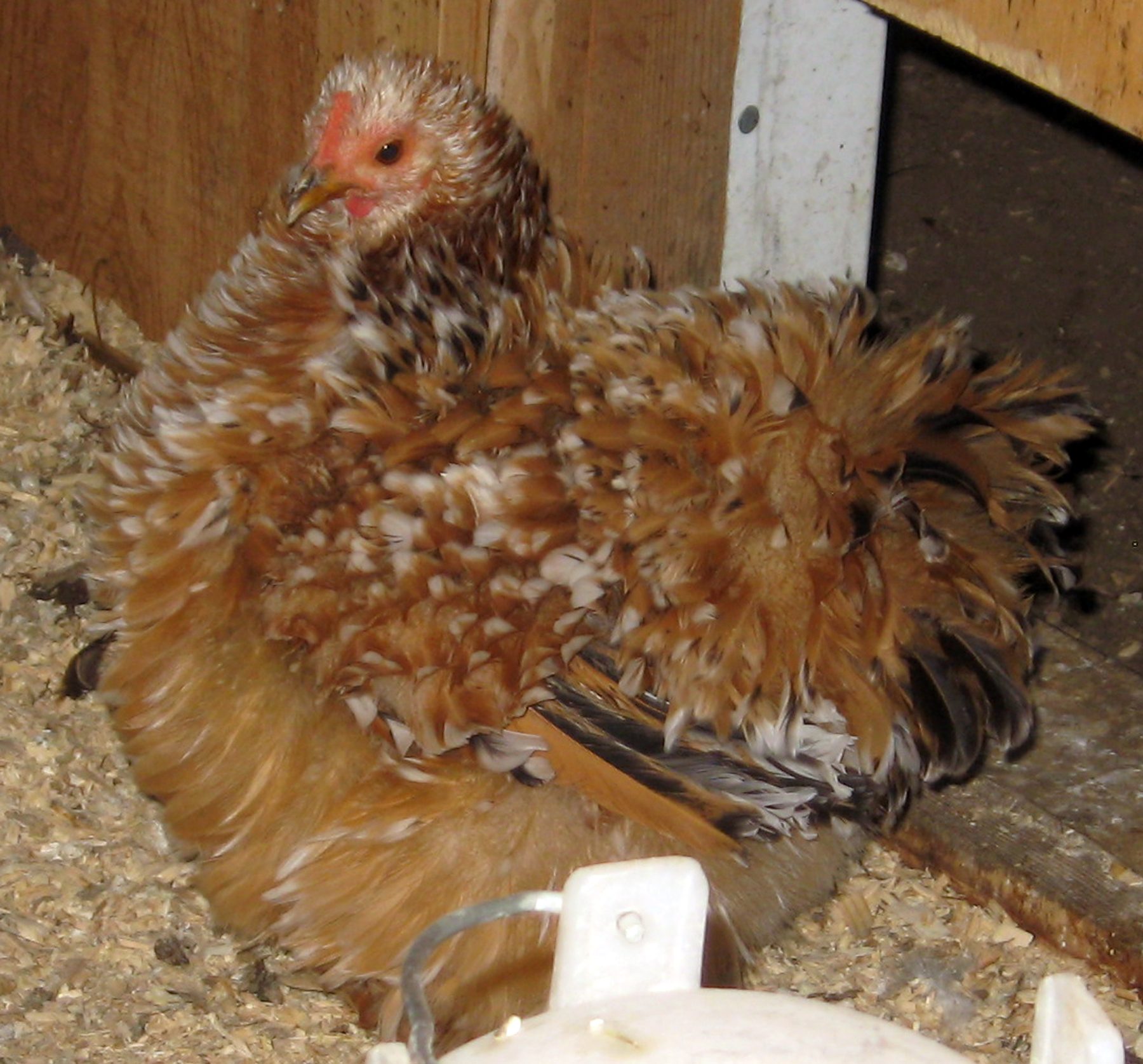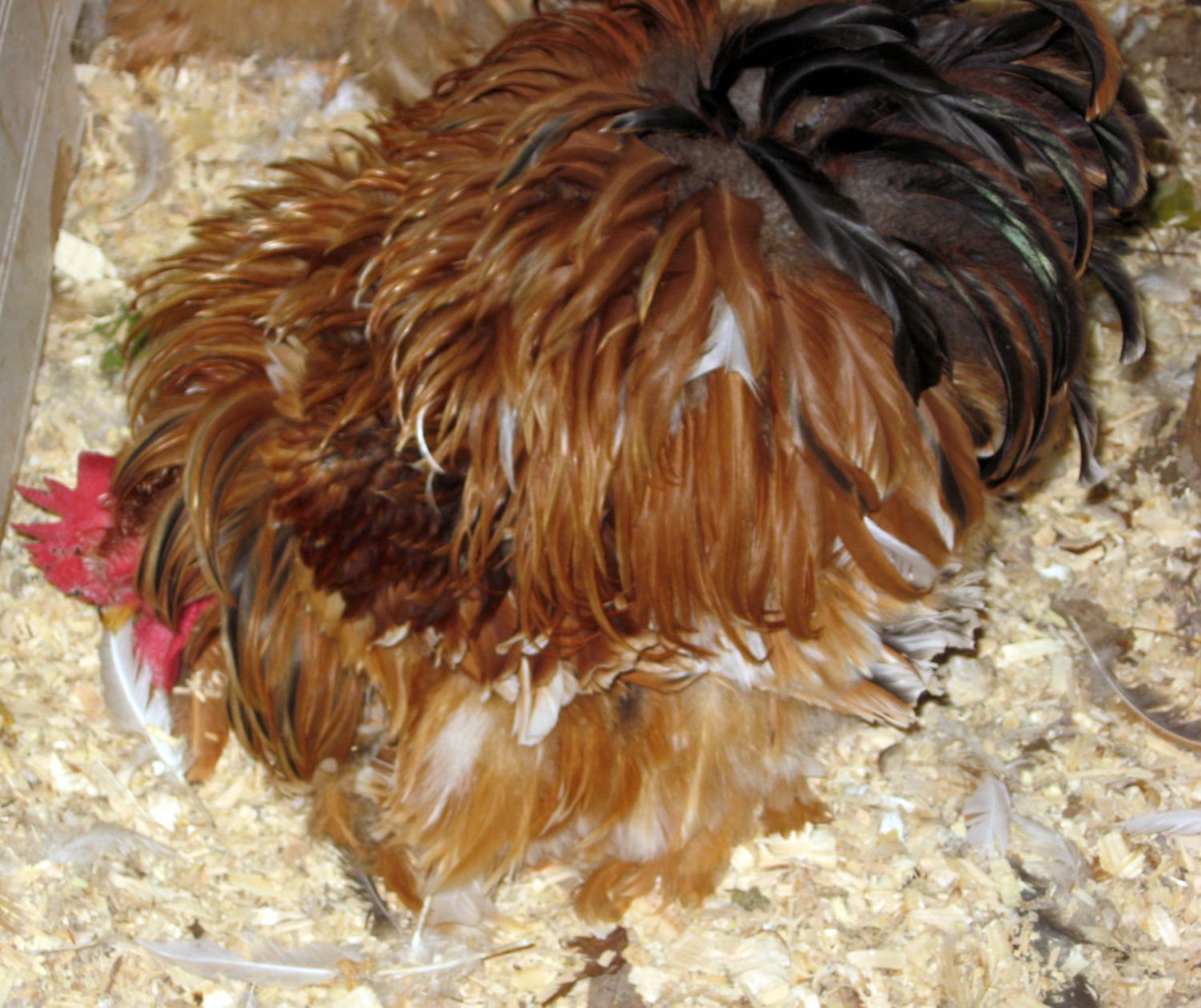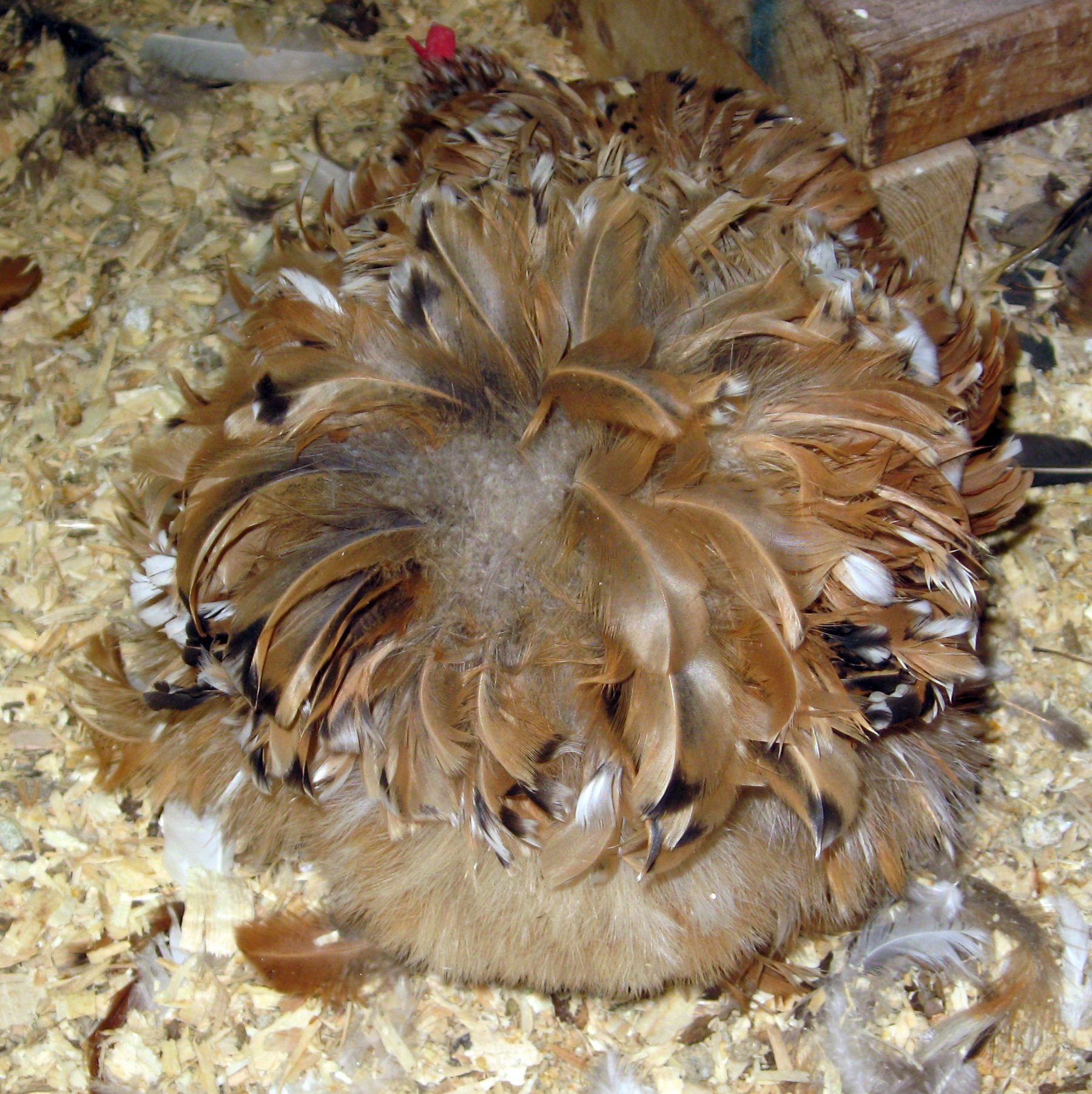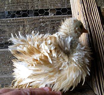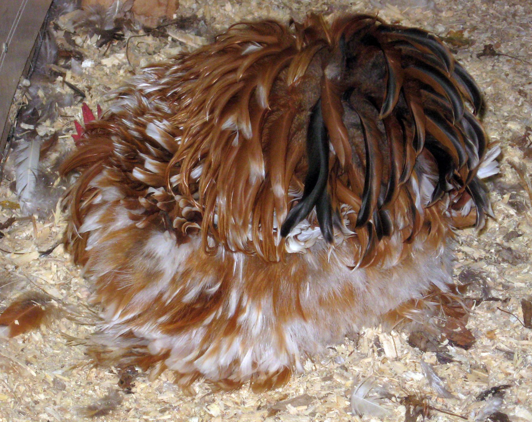 actually, the melanizing gene can be from a number of sources, but columbians with nice dark markings will probably carry it. a bird carrying Ml will show much darker hackle markings, and in ee+ type birds at least, will have some dark tips to the feathers. not a cochin, but a good example of what i'm trying to explain...