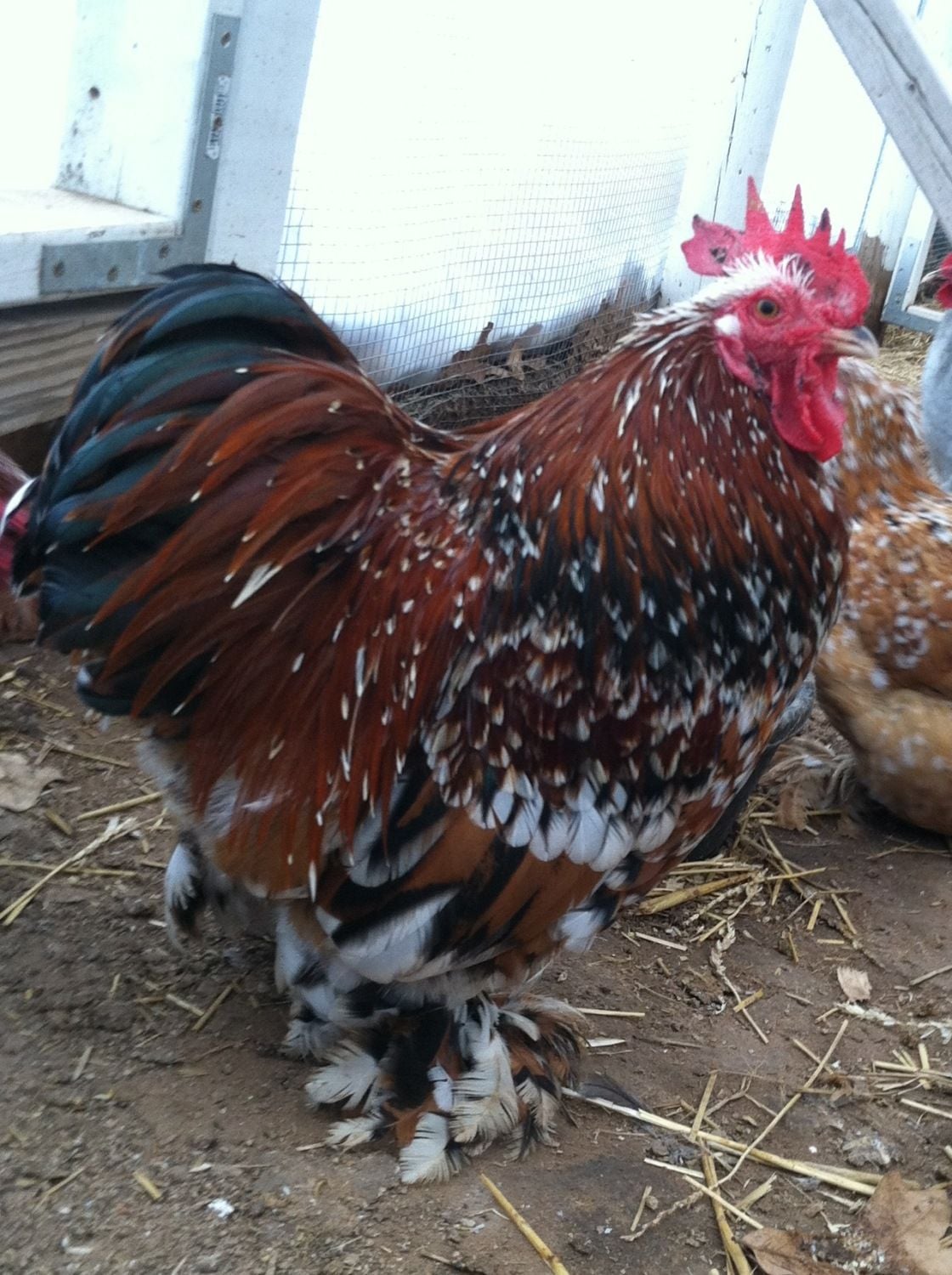 Now I, too, went out, again, in my barns and spread a lot of wings. Cochins and Silkies. I found some weak wings - I knew they were there. There are a couple of cockerels I'm going to be keeping my eye on, but I'm not ready to cull them just yet! If they are indeed split at maturity then they will be culled. Right now they look like weak wings.