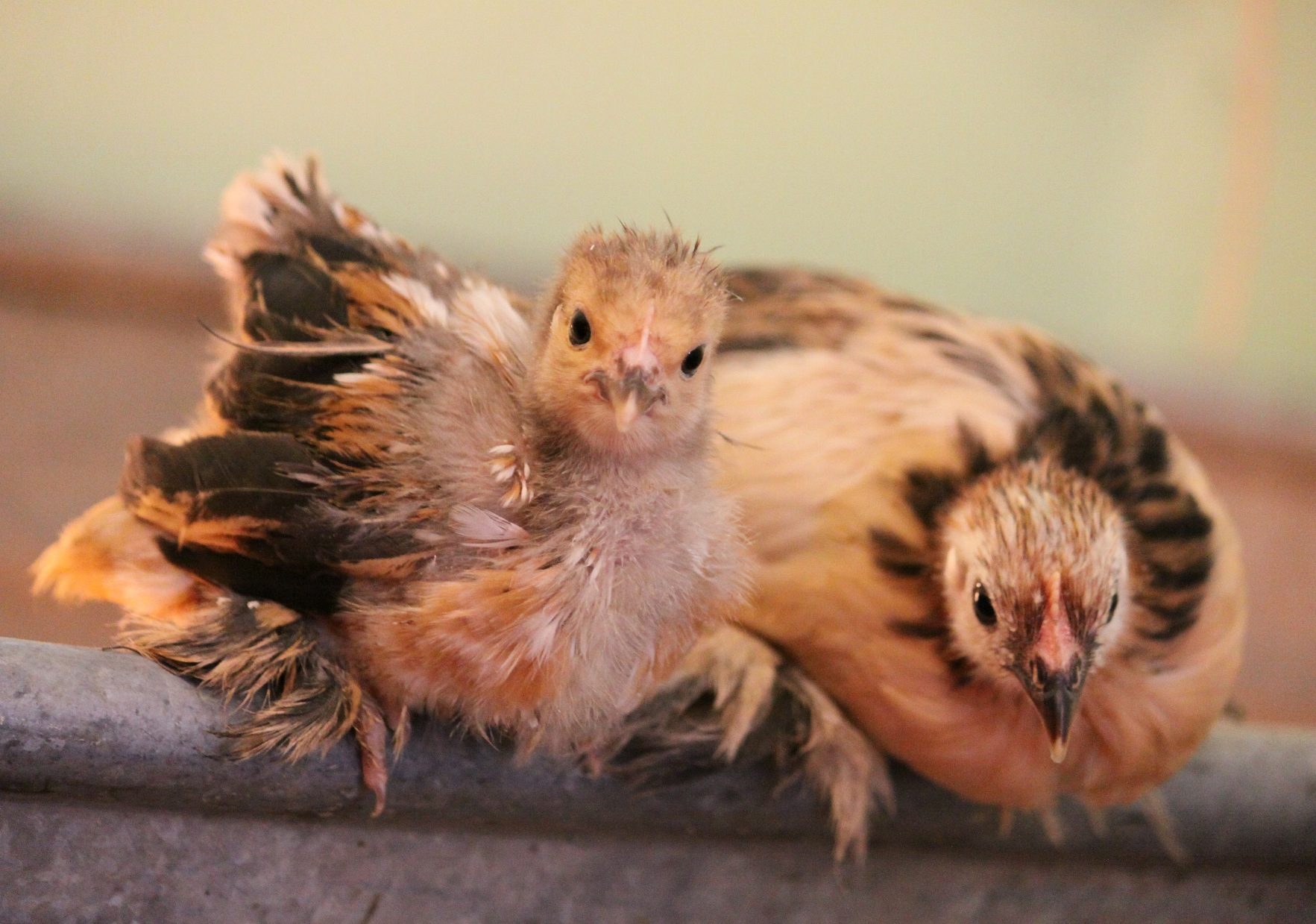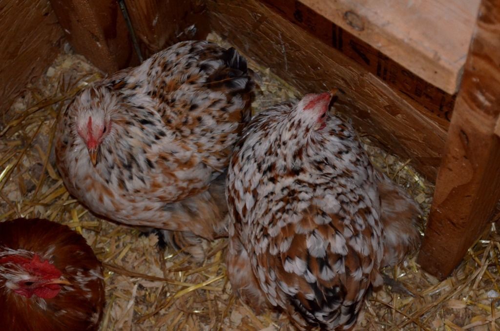 Calico cockerel from Byron x Mildred and a BC like pullet from Byron x Bridgette