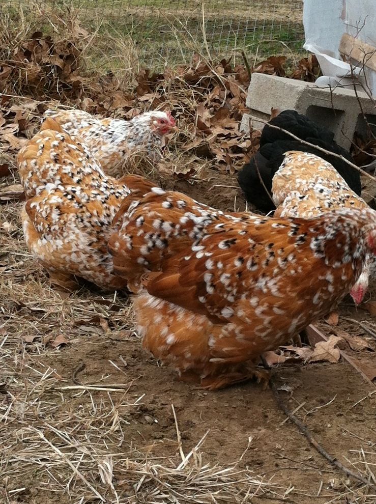 Here's a nice 2011 hen. She looked fabulous last year but, has turned very white and has NO black on her breast. Im hoping the mottled crosses help with that this year but, my blue girls are all "well-marked" so we shall see if that continues the excessive white issue.