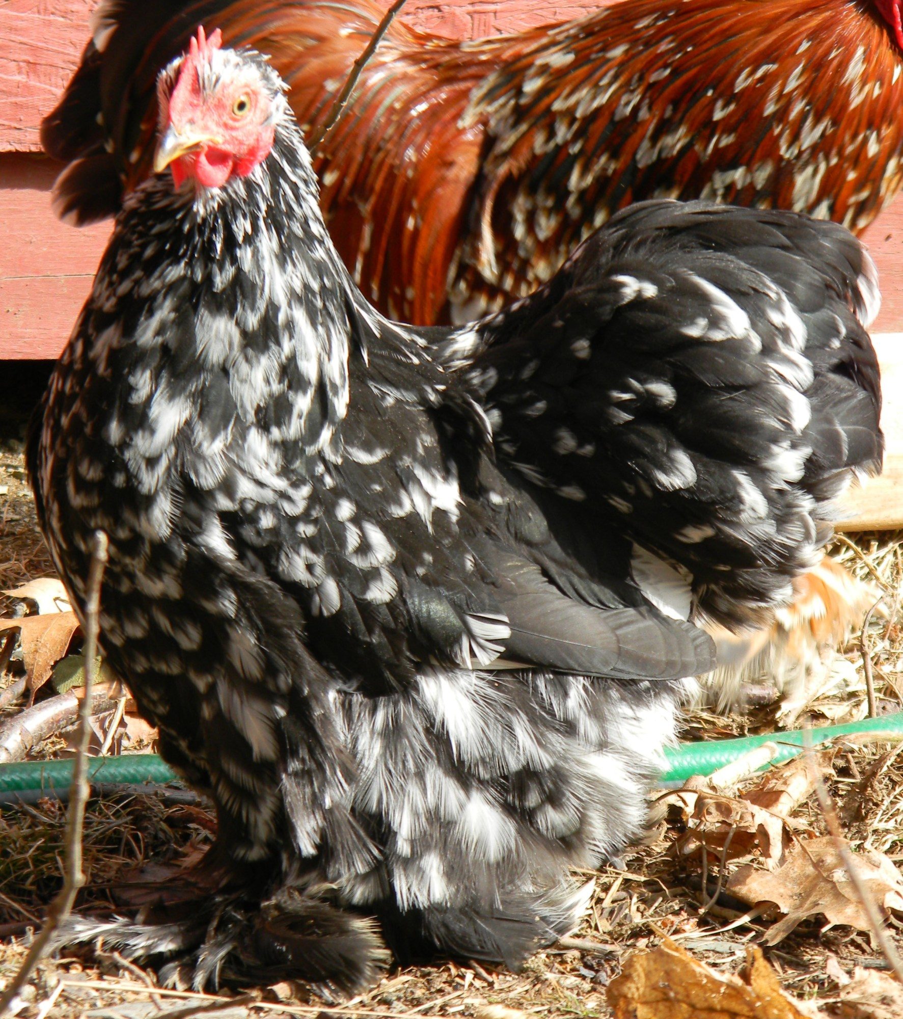 I was just thinking as an experiment, not to re-breed the offspring. You would only have to hatch a couple to see what it would produce, and they would be cute enough to sell off as pets. I think I will do that if my D'uccles ever start laying again. Would be interesting to see since the D'uccle is so predictable.It would mess up the Cochin type and would slow your progress of the mille fleur pattern in Cochins down a great deal in the long run. We try to breed for type first and the pattern will soon follow.