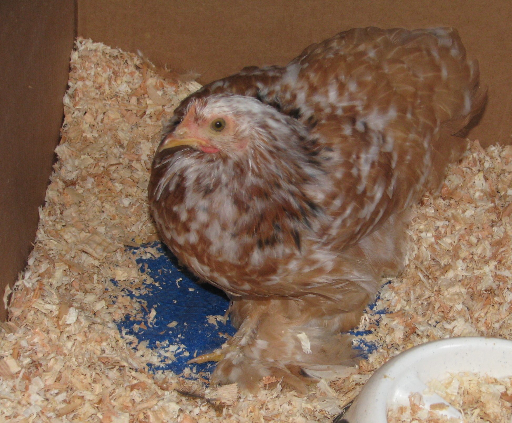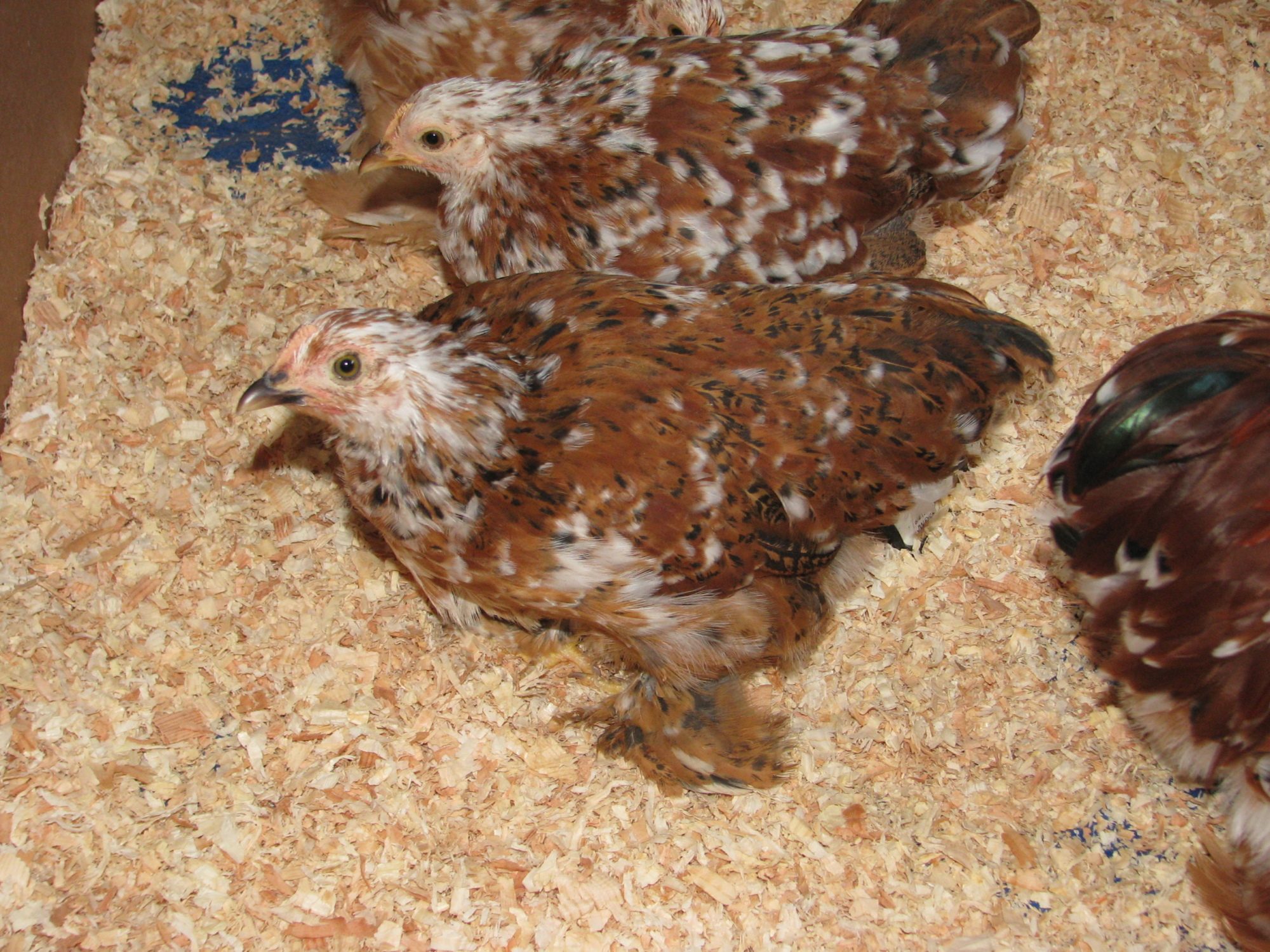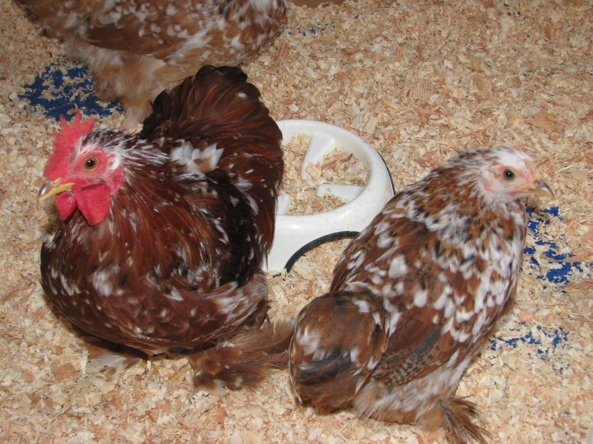 One was a lavender rooster I sold last fall! But he came with the 2 spectacular hens so I had to take him and had a friend beg me to take the Red Pyle Silkie rooster for my Sizzle project. Geez! I gotta stop going places!