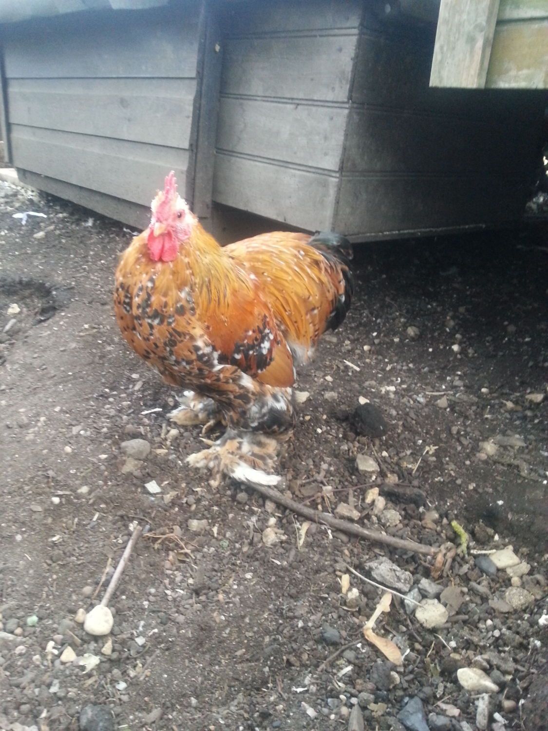 Aw im so sorry about your hens blarneyseggs its horrible when they pass on. At least you will know if its anything contagious good move on the necropsy. As promised here are some photos. Meet wiz! And dante in a strop at the bottom cus hes got another man to contend with!