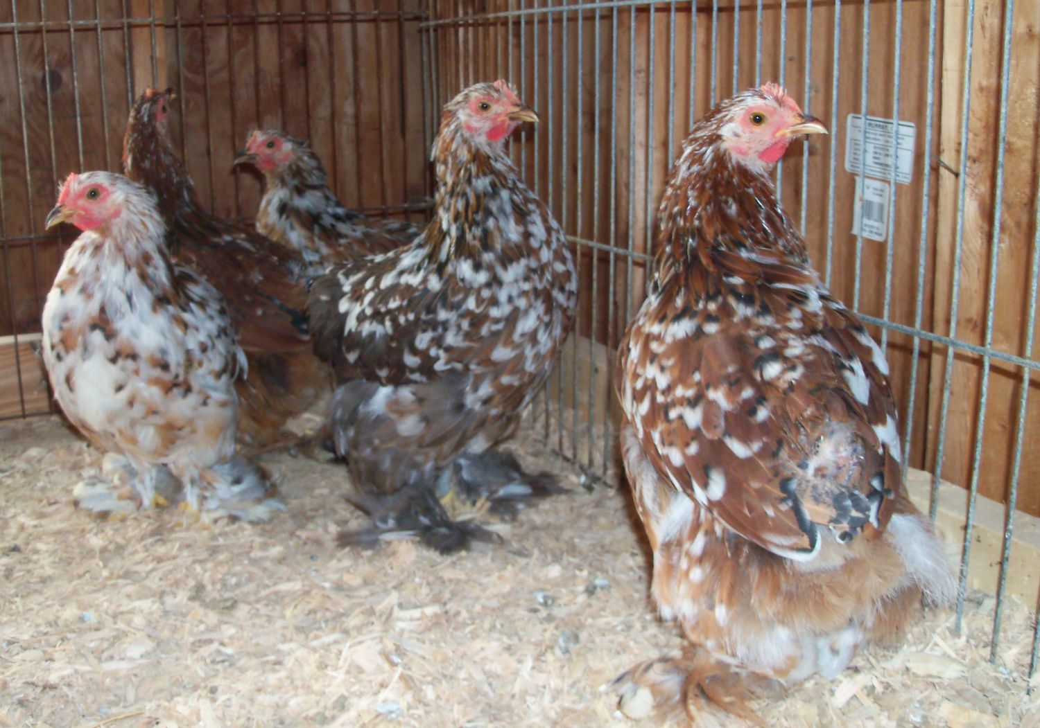 These are the only 6 I think I am keeping so far. The calico girl may go yet. She has breast flowers and I need that, though. The boy is getting that horribly big comb his grandfather passes down. And, of course, everyone is tailless. The cockerel is getting his back since he's all by himself. So, I can't really tell who has good type and who doesn't.