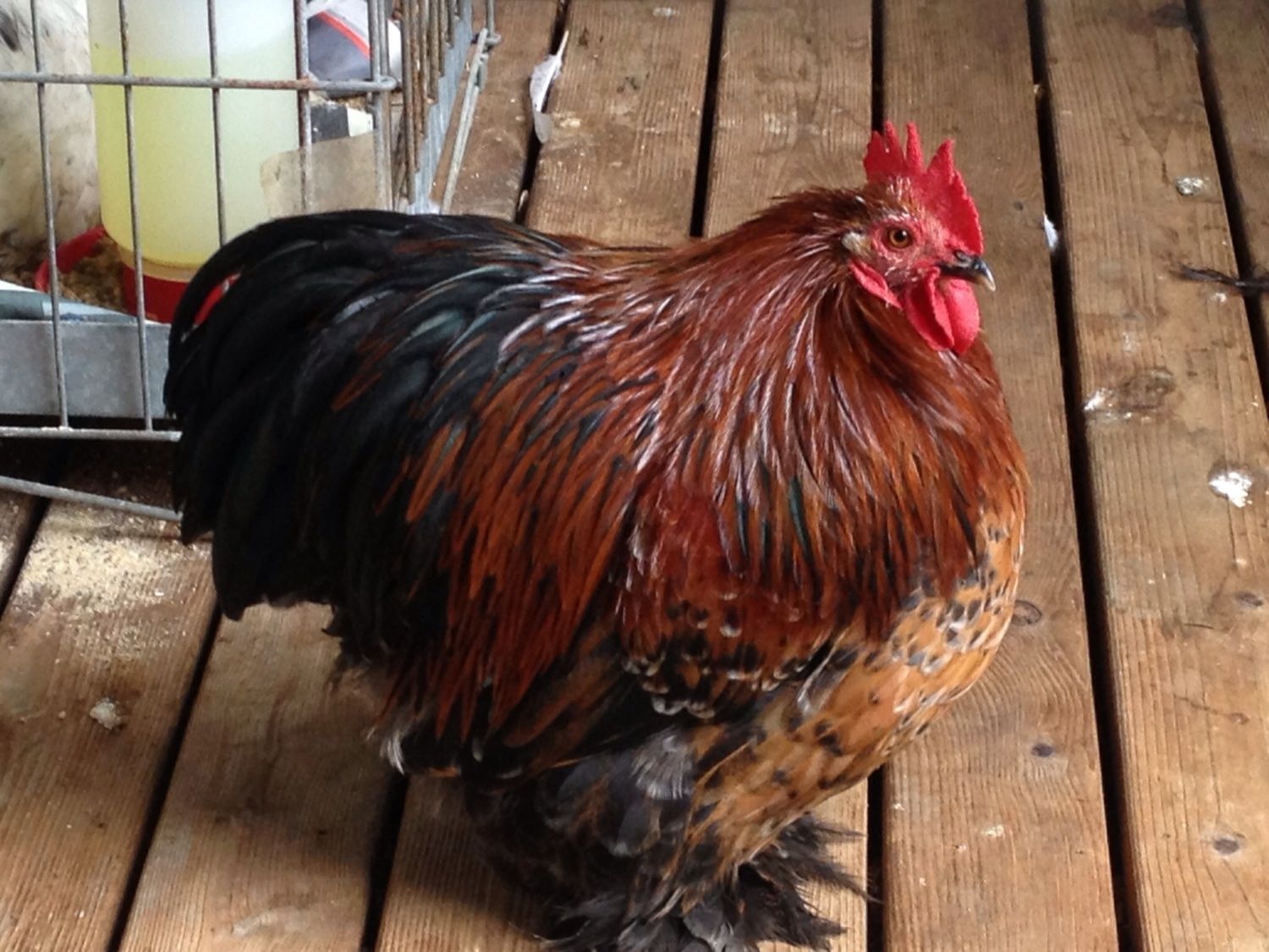 Here is "Simba" my 7 month old Roo I hatched this year and keeping. He is so sweet and I love his coloringInteresting thing is he was hatched black with yellow chest! So I guess you never know what they will end up like!