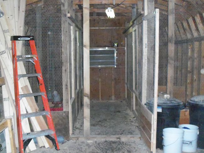 Down the aisle. Three pens on the right (5x5, 4.5x5, 3.5x5) and 2 on the left (both are 6.5x5). The aisle needs finished (that 1' open section and the 5' solid plywood bottom will be pine tongue and groove and enclosed so I can use the aisle for a pen, too. It's 4'4"x13" and I am going to squeeze my 19 Ameraucanas in there. They are housed in a smaller area now... I just hope they don't realize they can get over the walls into the other pens. If so, they will go back out to the big 10x10 shed. I was trying to get everyone consolidated into one building for winter. Other than the geese and turkeys, I think I may be able to pull it off!