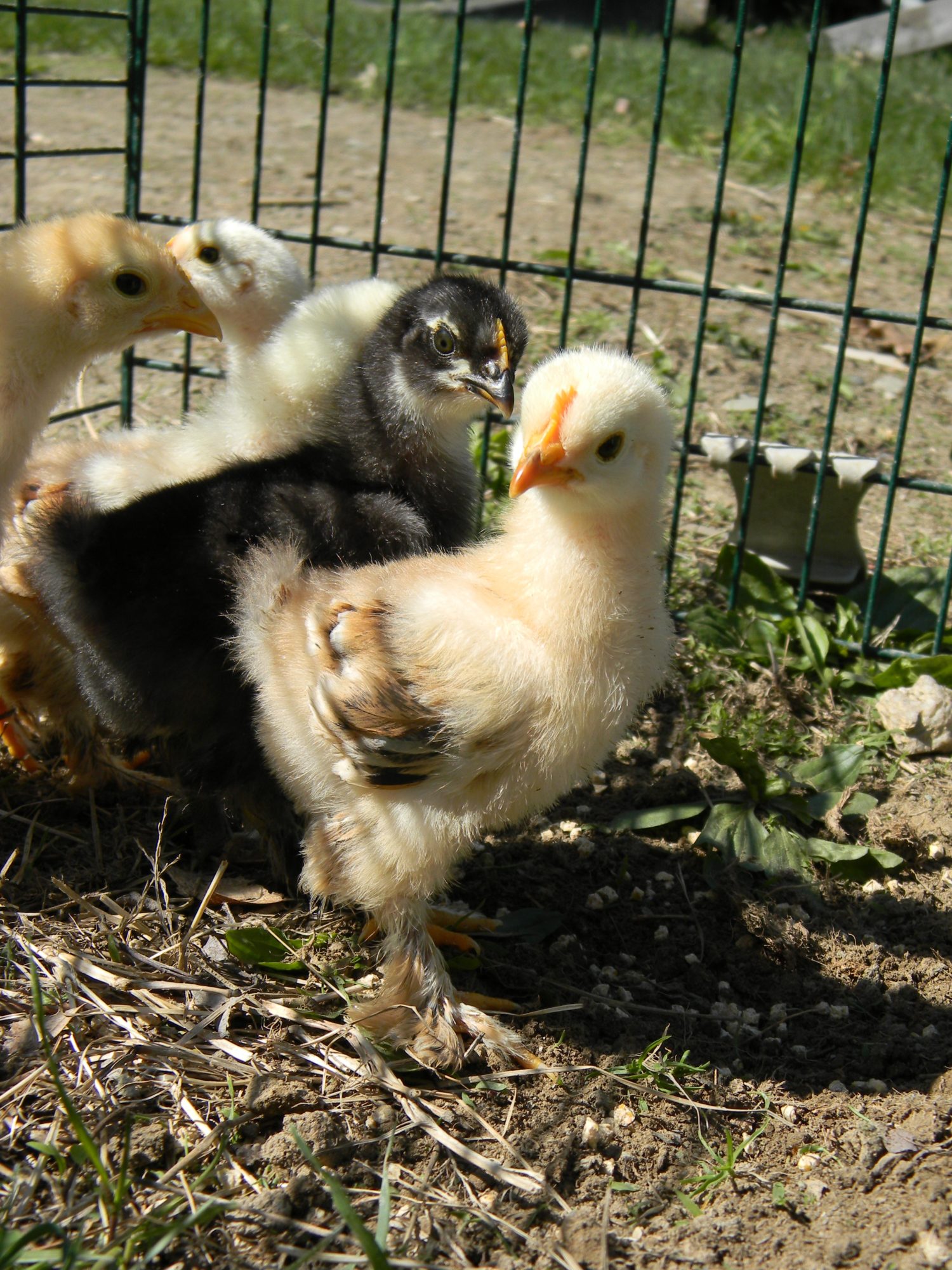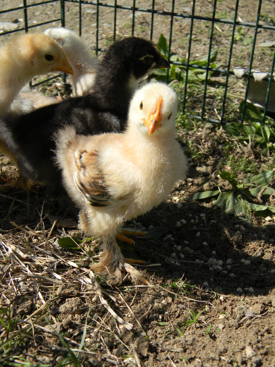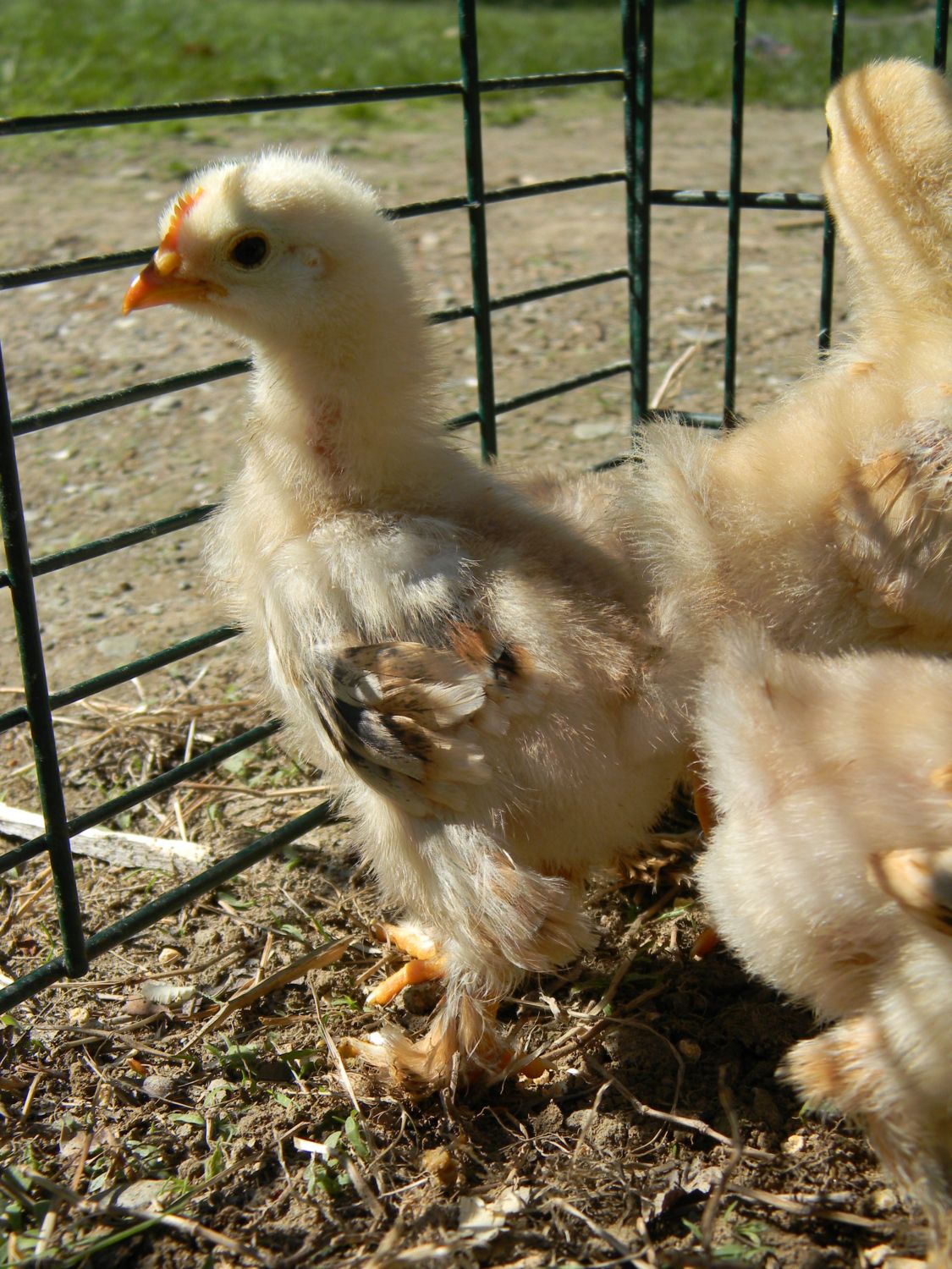 And I have a question. I have hatched 2 chicks from Tuba this spring that have been black based and each one is coming in with absolutely no white. The father is Nigus and all the yellow chicks excluding the frizzle are out of Tuba. Will her chicks be solid black or white you expect some mottling or red leakage to come. I'm curious as Nigus is that solid orange with one white foot feather. I think the chicks are one cockerel and one pullet.