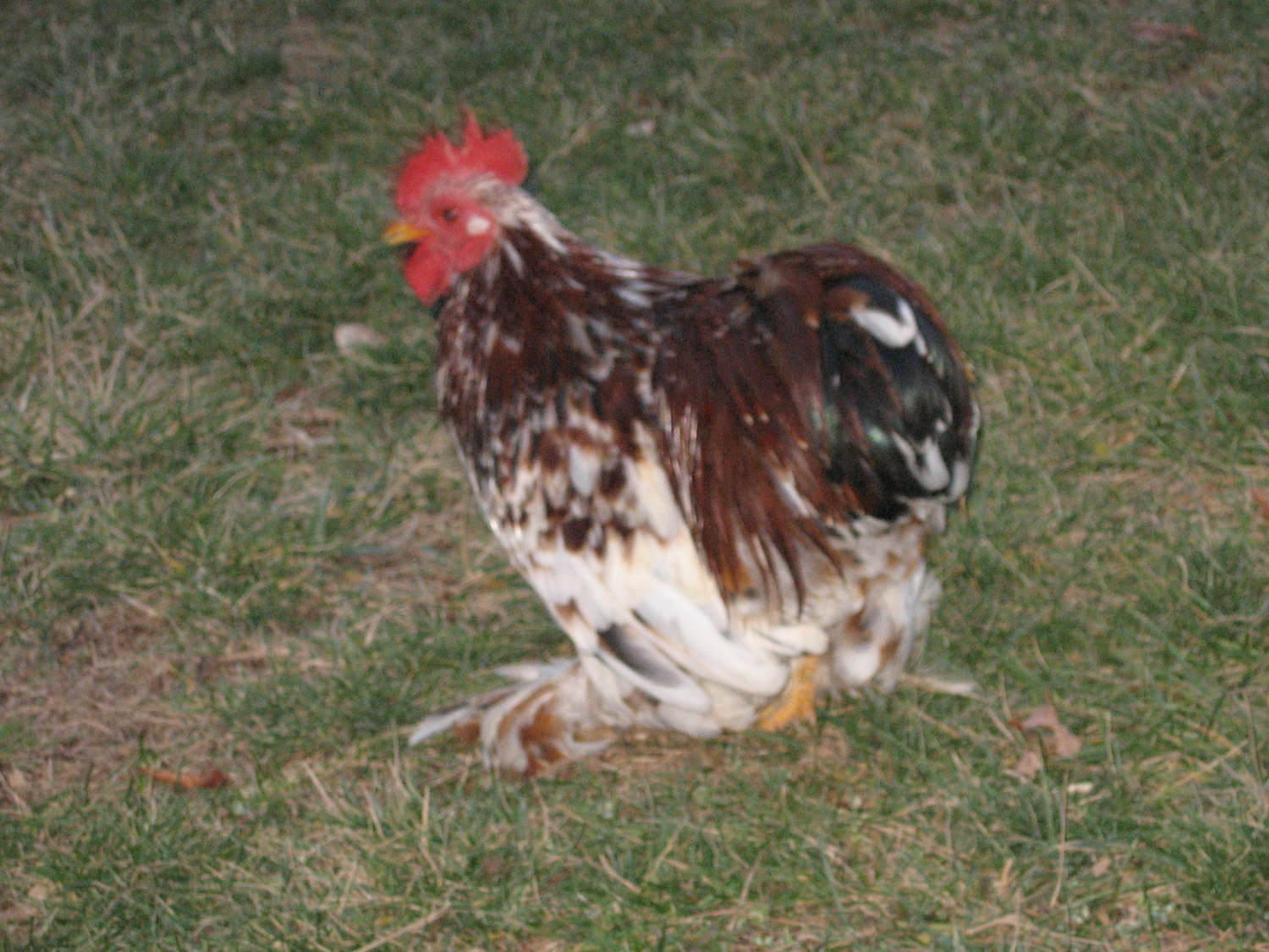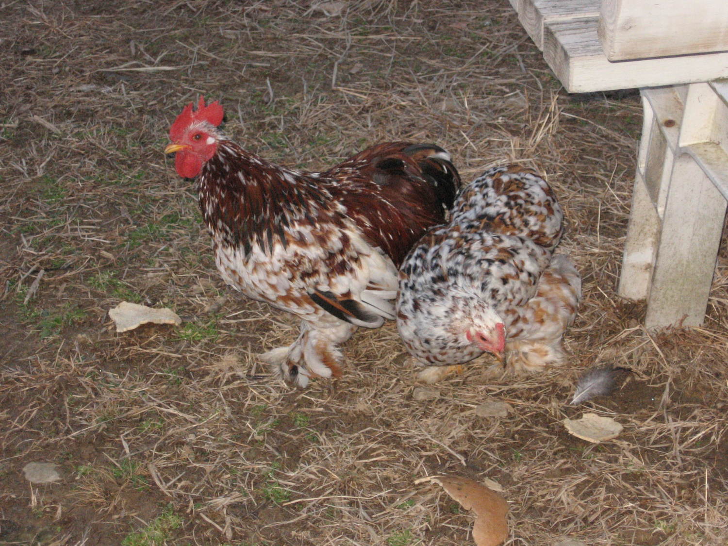 Mike, Feather is going to be gorgeous. He just needs to mature. His type is awesome. You need to breed him to a Black Mottled or BM x MF. Little Ginger Nut will be great with your less than perfectly patterned (light) girls. Don't throw the baby out with the bath water. :)