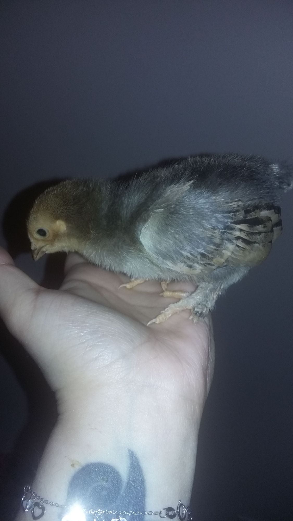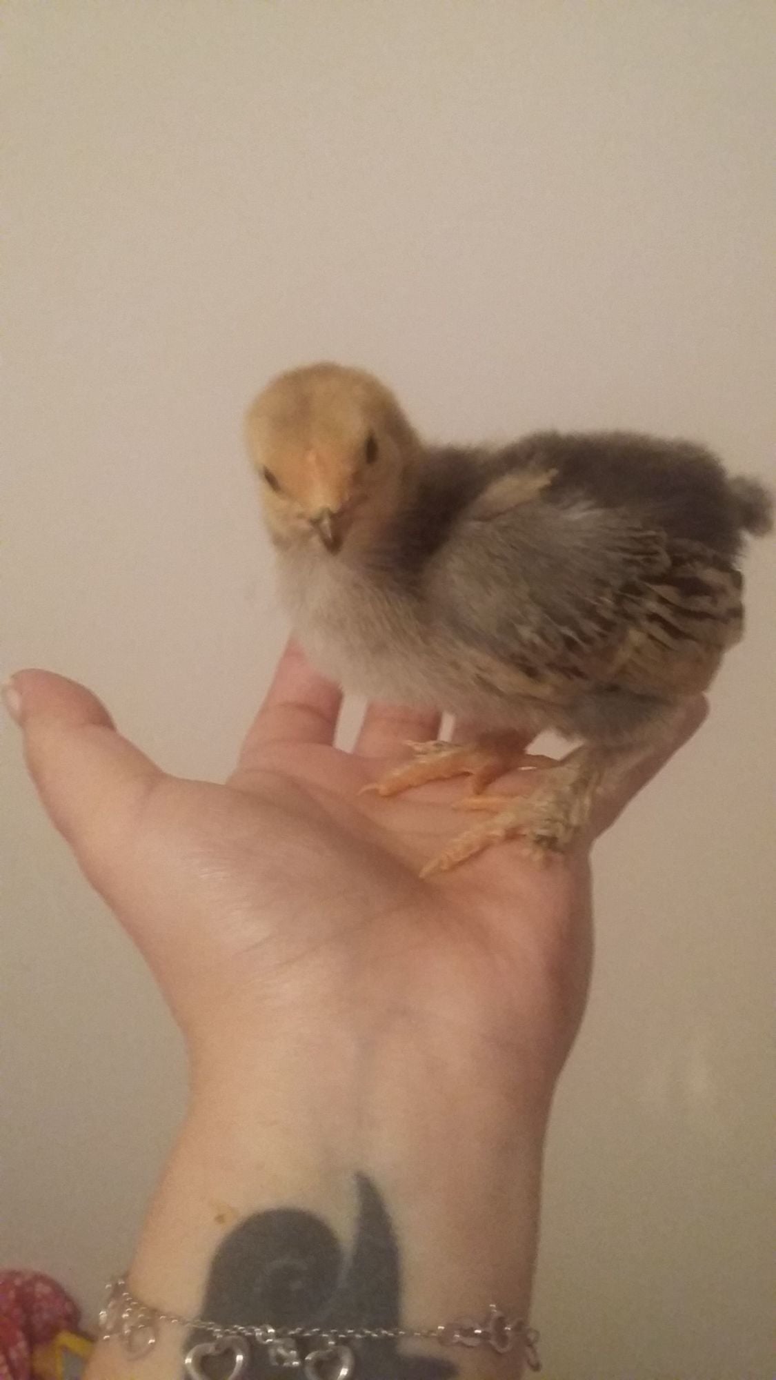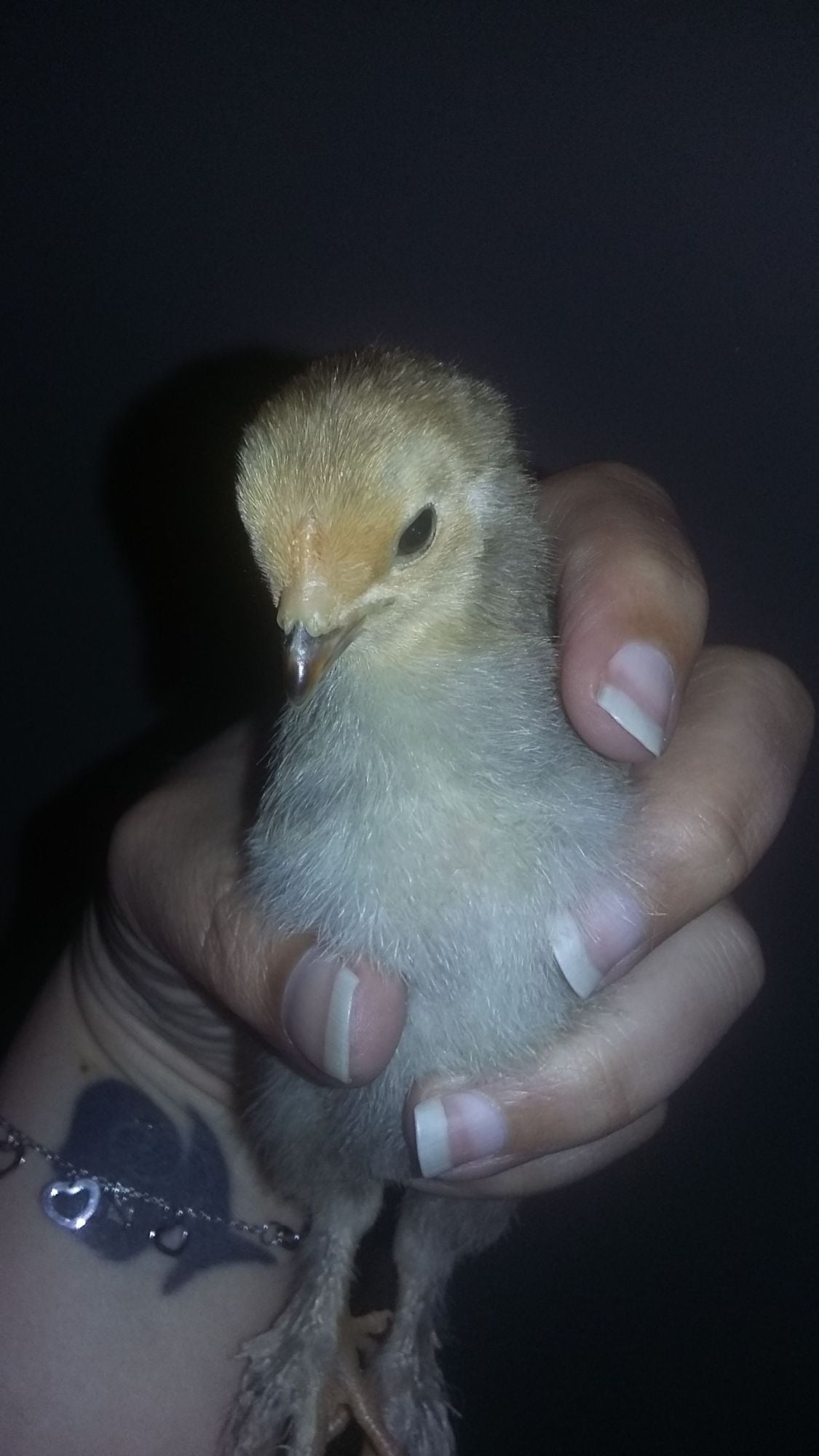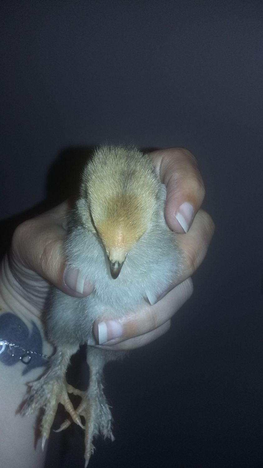 This is what they look like now. I tried to get a good picture of what the feathers growing out on the wings looked like, and the chick was not having it. So they're very awkward photos. Lol.