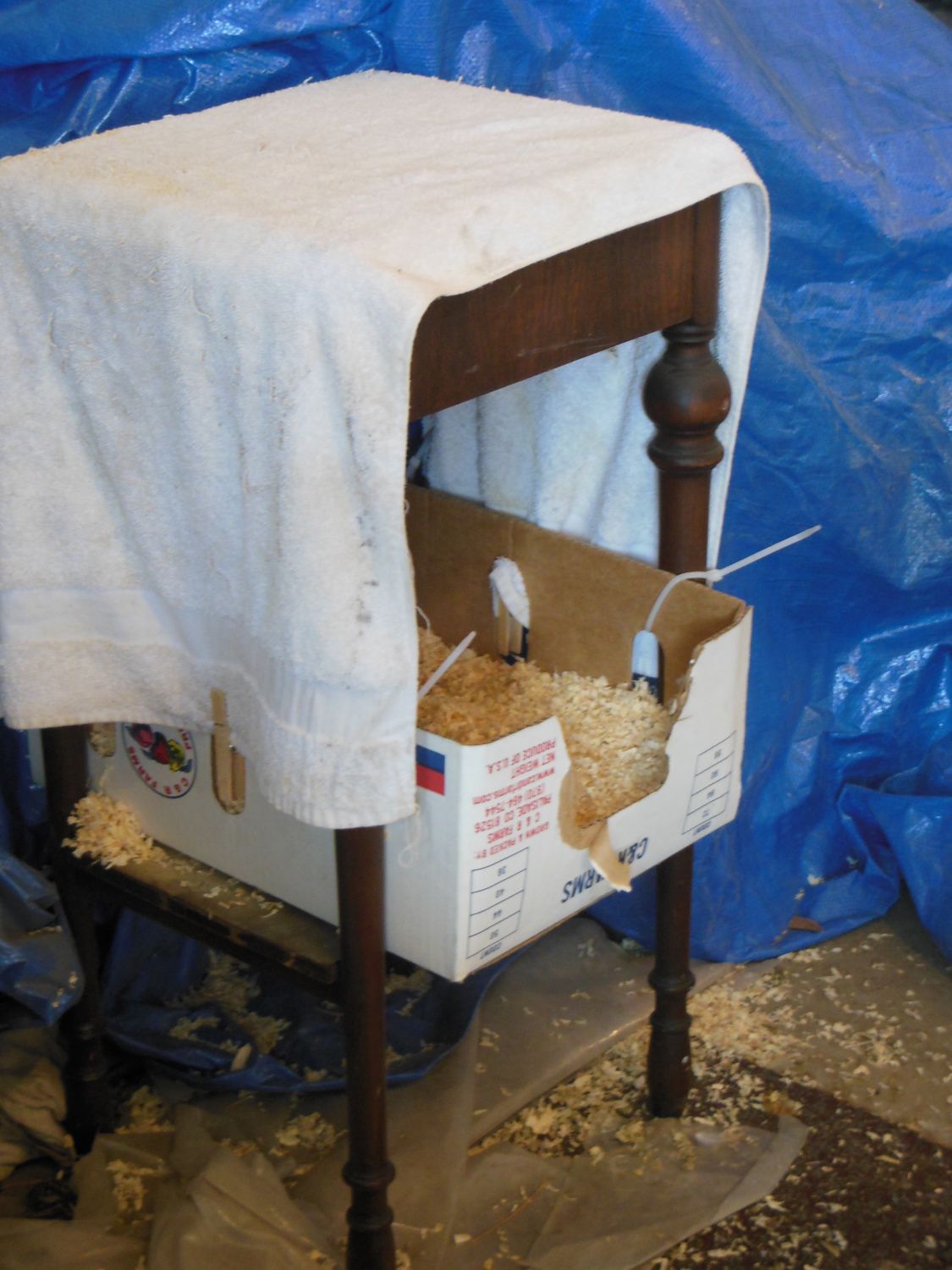 We were actually blessed with 5 eggs yesterday. Three in the cat carrier you see up on top of the dog crate and two here: