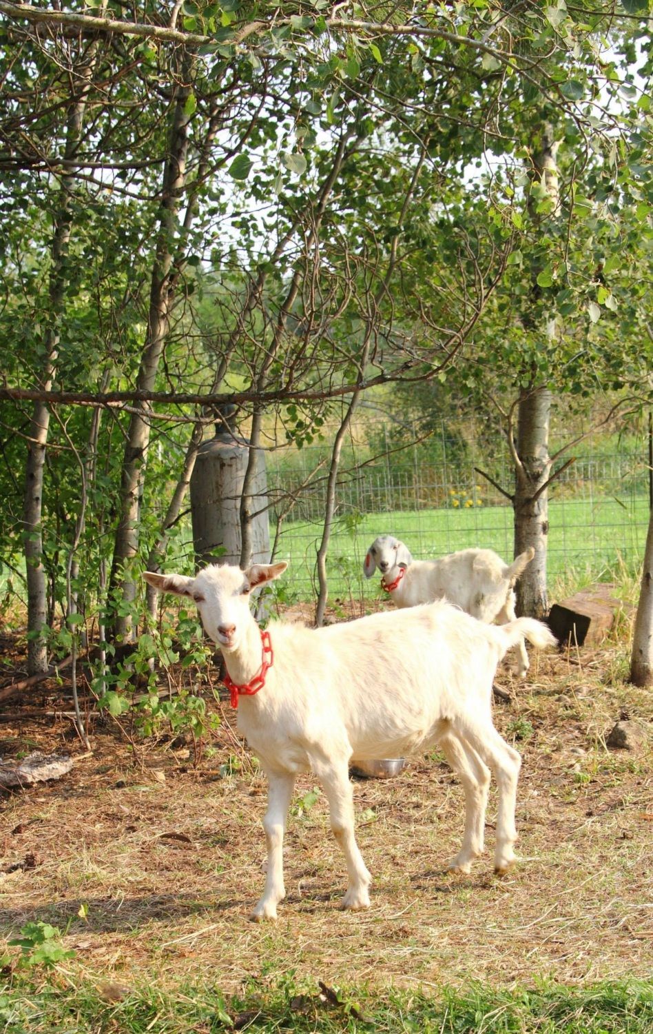 We got goats. They share an enclosure with the chickens. Had to make the pop door smaller twice and Irene the goat can still get in the coop. They are currently making a bunch of noise and I feel very sorry for their insecurity. In one picture you can see an old propane tank, which I thought was a little redneck.