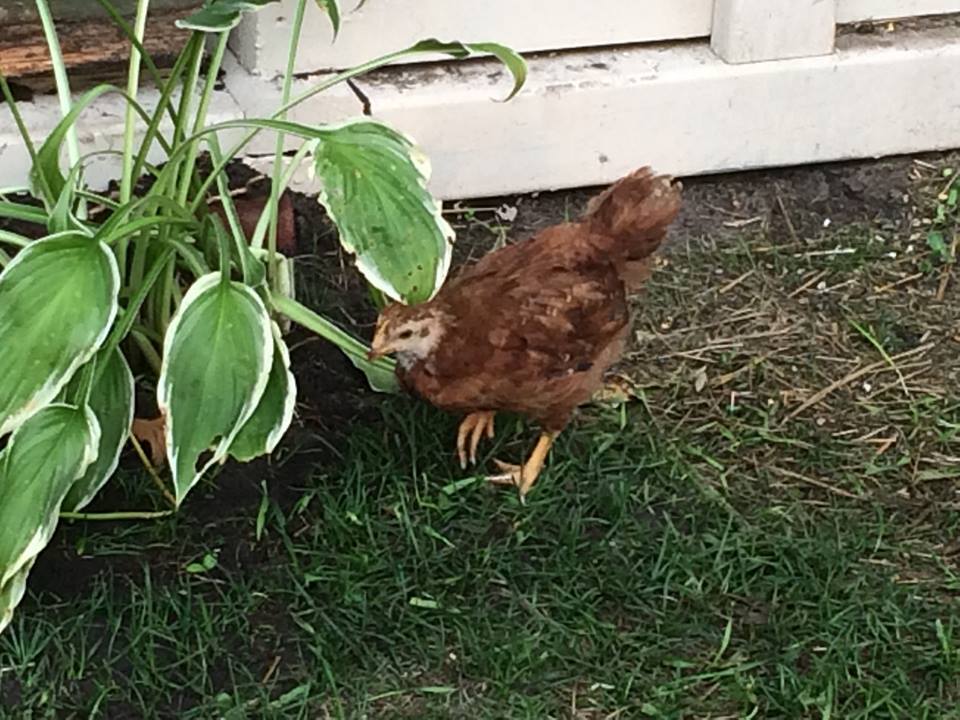 What a nice day out. We harvested tomatoes and potatoes today. After I tilled up the potato patch, I turned the chickens on it and they went to town on the abundance of ants and weed seeds i turned up. Even Betty White is getting brave an adventuring out.