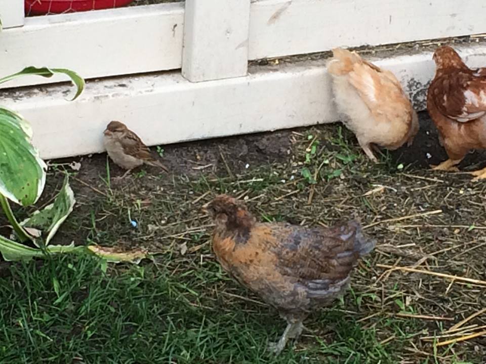 Conrad and crew got yard time today, too. I am quite excited to announce he has begun to crow! its quite funny, but he is getting there. I dont have any fancy camera with zoom besides my iphone, so I am struggling to get good close up shots. I would love to show you guys some nice shots of Conrad. He is getting so handsome but wont let me get close..