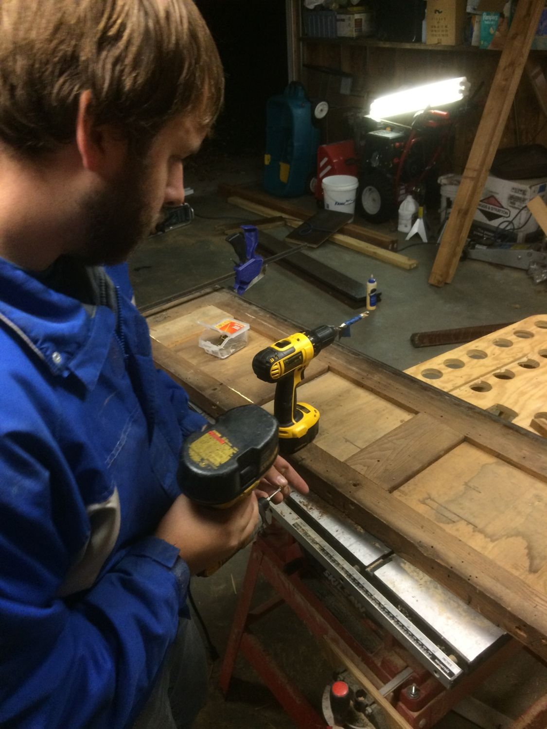 Then we spent most of today making jigs then hammering out mega piles of Lincolin Logs! we used to play them as kids, so we made them for his son and our other brothers kid. still have to figure out the roof trusses and slats.