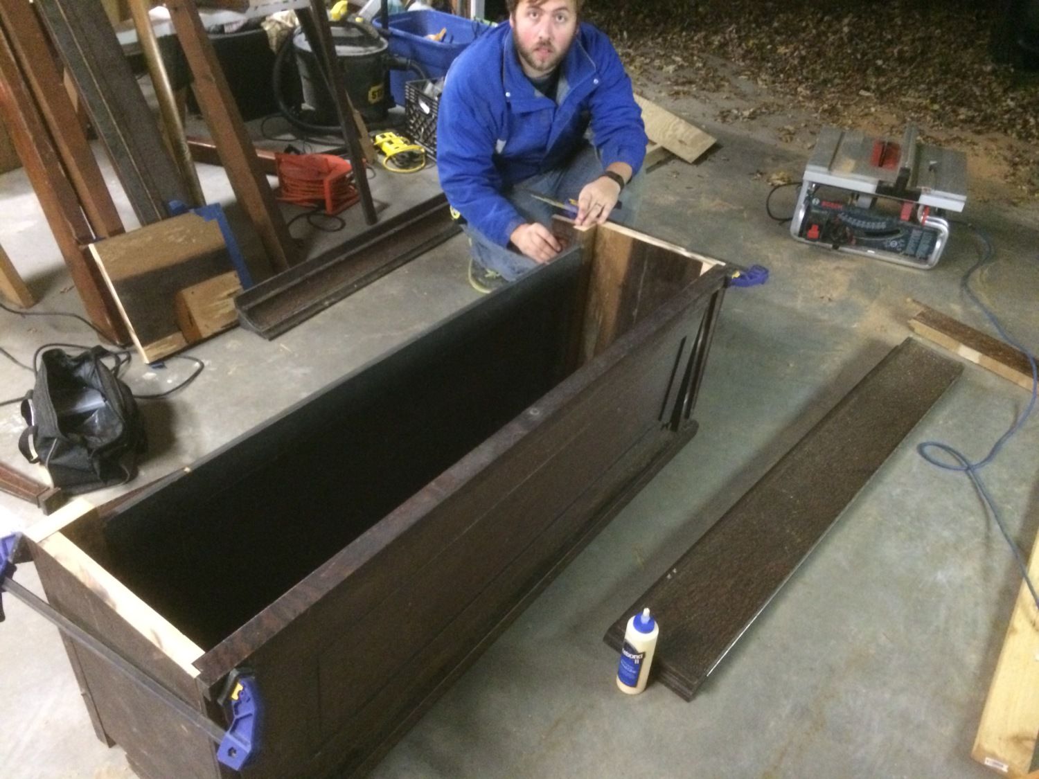 Here is what I spent the weekend doing, besides playing with my nephew. My brother and I took apart my mom's old upright piano and turned it into a chest for a christmas present. It was very old and wouldnt hold a tune. It was nothing fancy and was something that was passed down the family a generation or two. The wood was all veneered pine, so we had to design the chest around the existing pieces as much as possible since we couldn't make too many cuts. I am pretty happy with how it turned out. No completed photo, but you get a good idea of it.