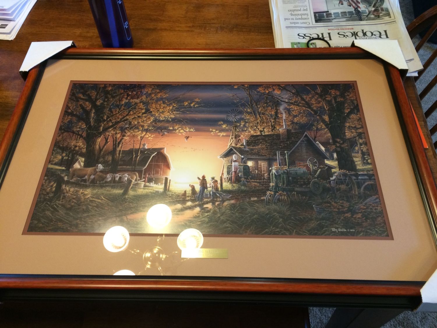 In other news, while I was gone, one of our neighbors stopped over and chatted with DW and gave us this Terry Redlin print and invited us over for dinner! what a surprise! Not a great photo due to the glare but check out the neat farm scene!