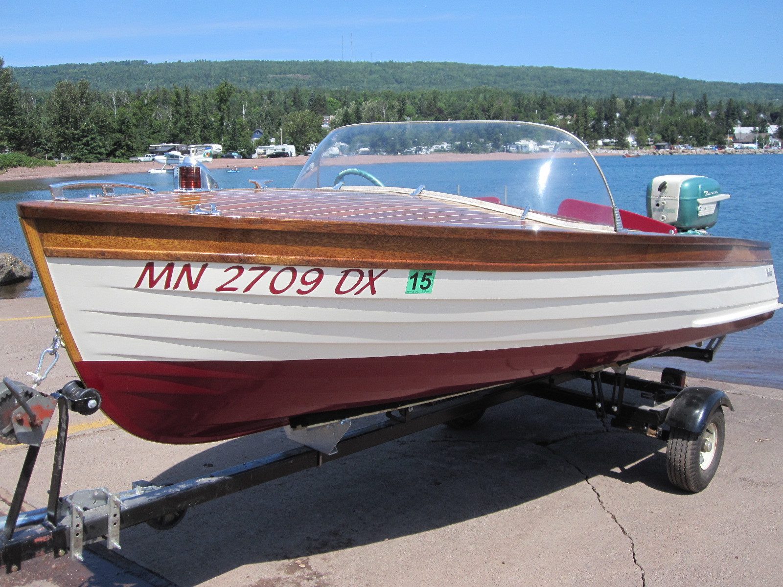 WOW!!! That wood hull is sooo nice. I have a 1963 wards rebel. Fiberglass hull. Nowhere as nice as yours. But I like it. I call it the barbie boat.