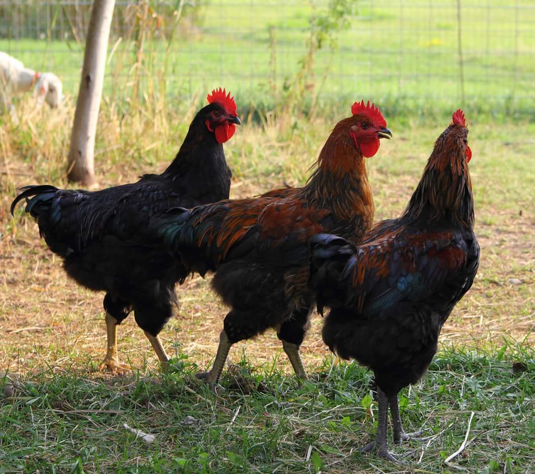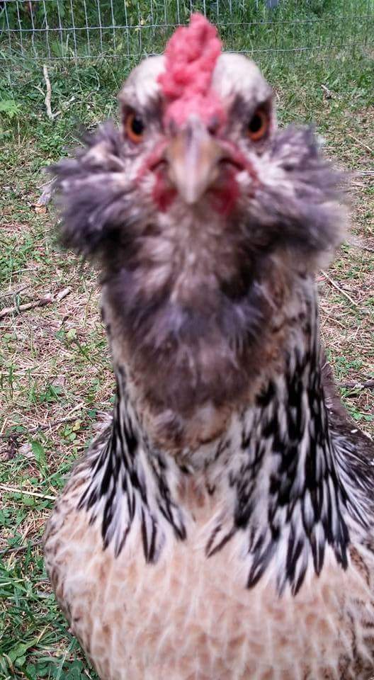 Bovans, Asian Blue roosters (no longer with us), and me applying pressure to a wound on my goat. The goat is healing..