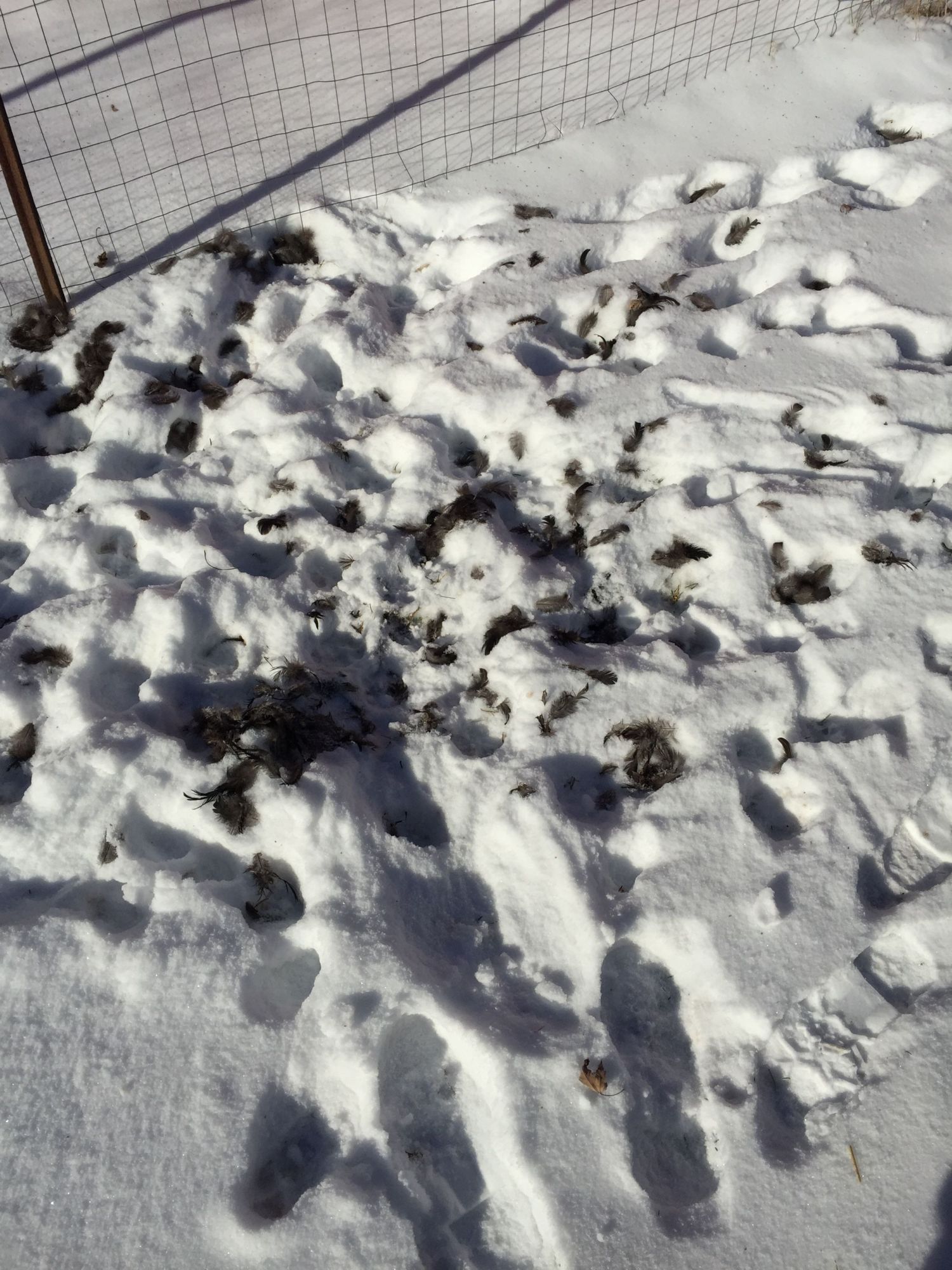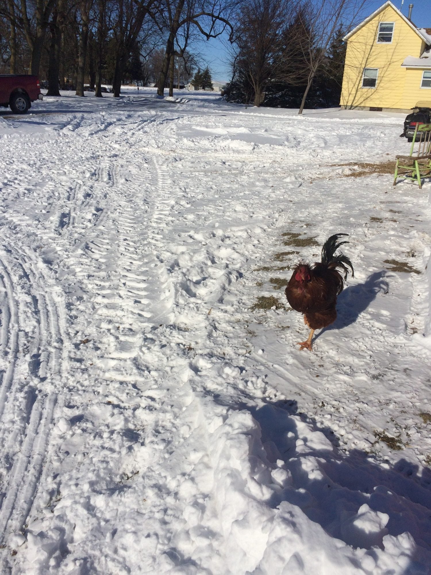 Goldie's Liberation Day turned out just fine. After I warmed up I went back to the coop. One of the bossy hens chased Goldie out of the coop, so I spent an hour laying on my belly in the snow watching the drama under the coop. She did fine. Rooster chased her a bit, then finally dropped a wing and danced for her. She shunned him and he let it go. She was determined to dust bathe and did so despite the bossier hens chasing her out of each and every dust bath she started. She was eating well, managed to get up to the coop a couple of times, so.....I think she has rejoined the flock.